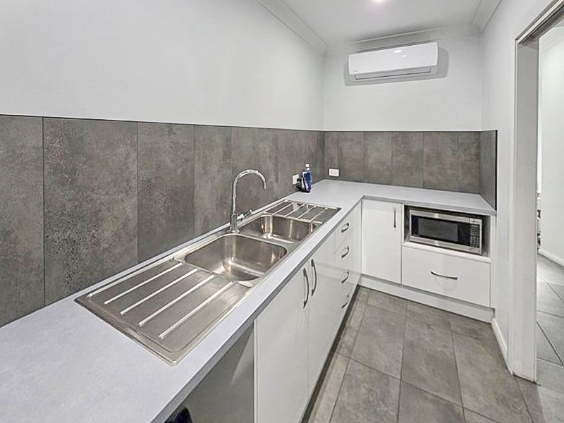 Practical features include seven split-system air conditioners, a kitchenette, and a laundry with tub and space for a washer and dryer. Convenient rear access is available via Meagher Lane.