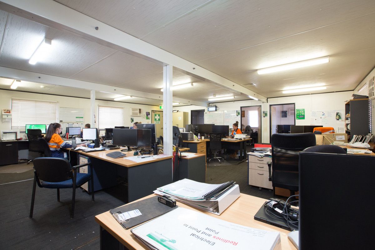 • Large Transportable open furnished office with 5 wall air con units, good quality carpet flooring, 3 additional separate managers offices with split system aircon units. Small kitchenette
