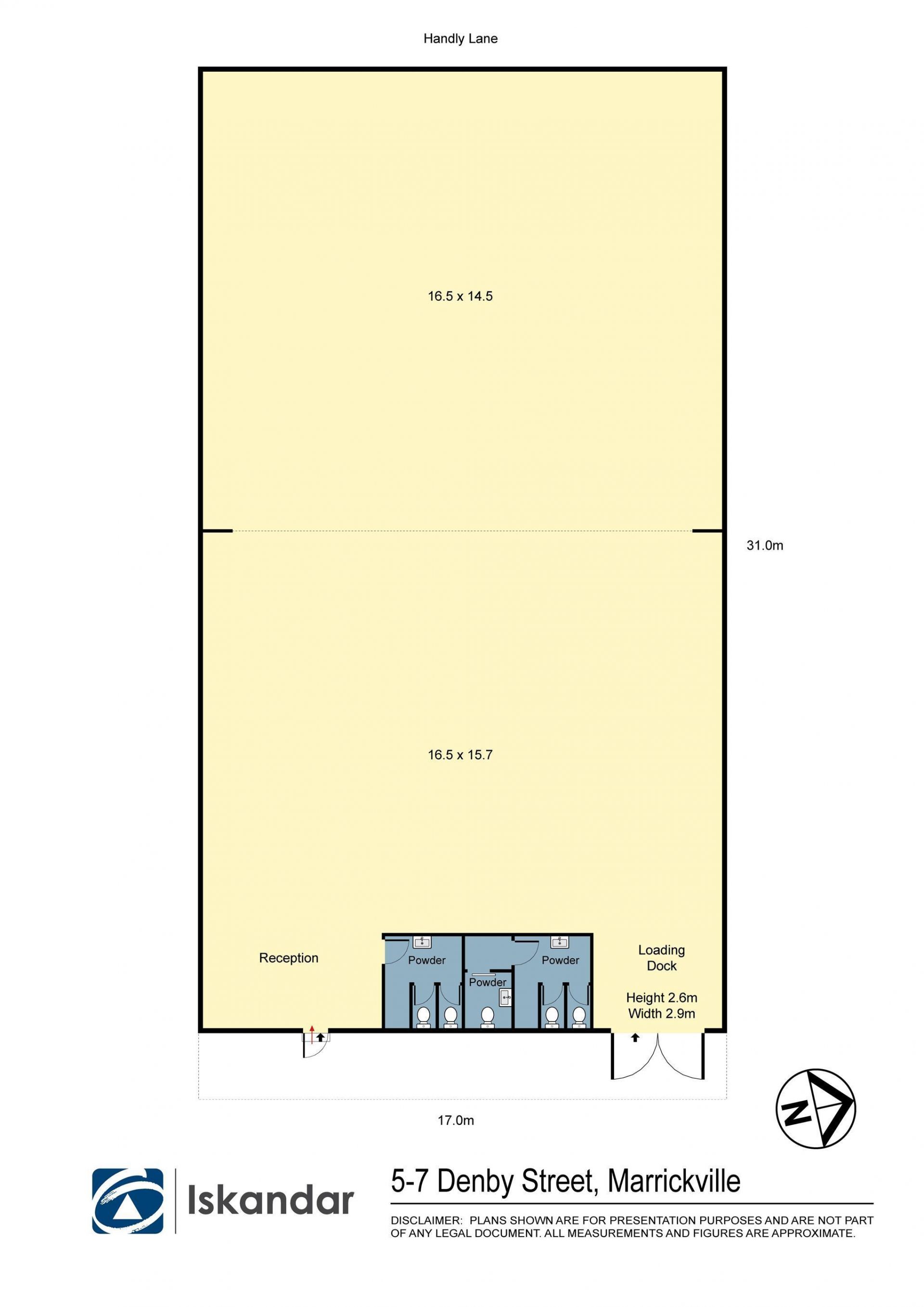 Roller door entry height 3.25m & rear lane