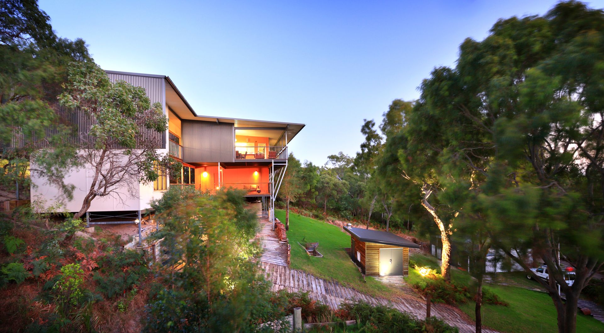 The house was architecturally designed to complement its natural surroundings. The colour palette was inspired by the beauty of the local gums. Materials were chosen to complement the natural environment & to be as maintenance free as possible.