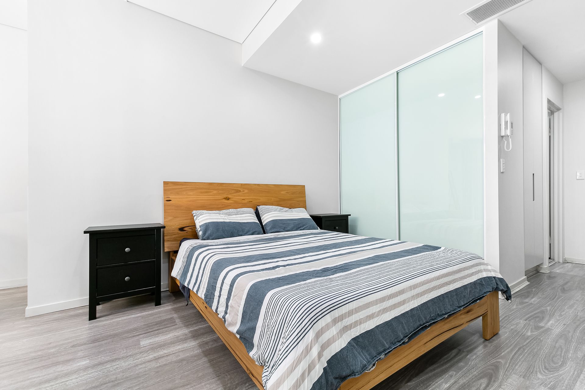 | Oversized bedroom with sleek built-ins