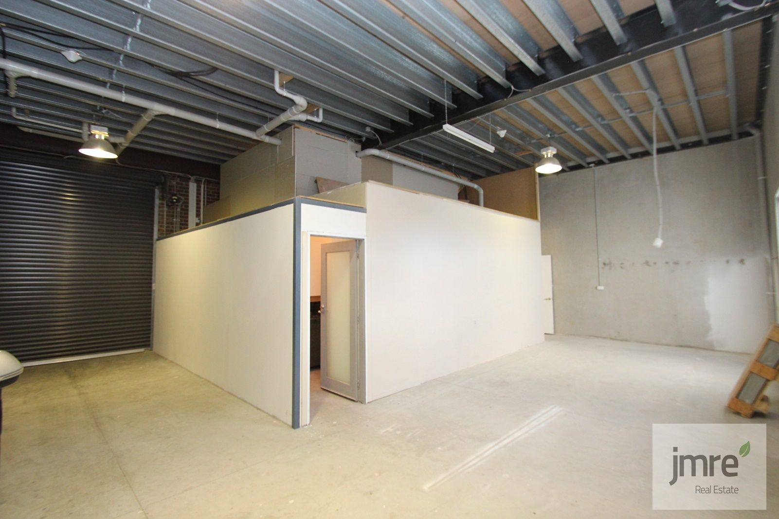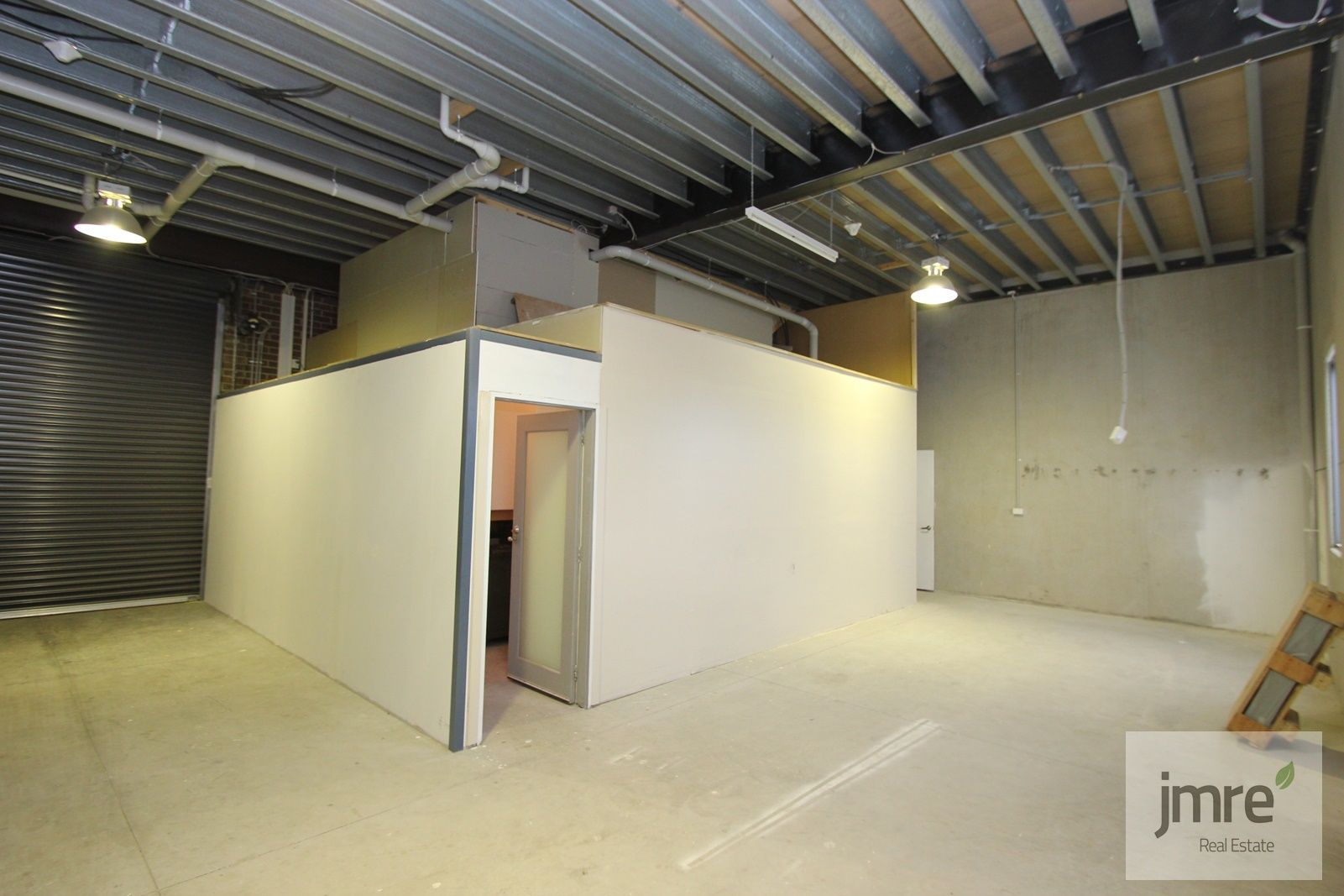 - Spacious ground floor warehouse with concrete flooring and accessed through wide roller door