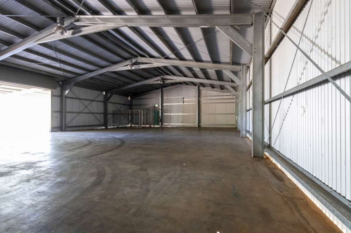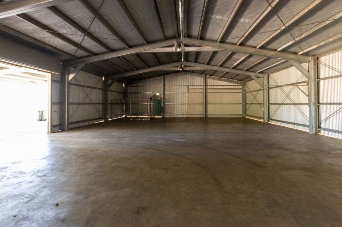 450sqm shed with lighting, 3 phase power and accessible bathroom, plus 240m2 lean to, plus 50sqm demountable office site, 5 bedroom workers accommodation, full security fencing, high quality concrete hardstand and streetlights for 24 hour operations if required.