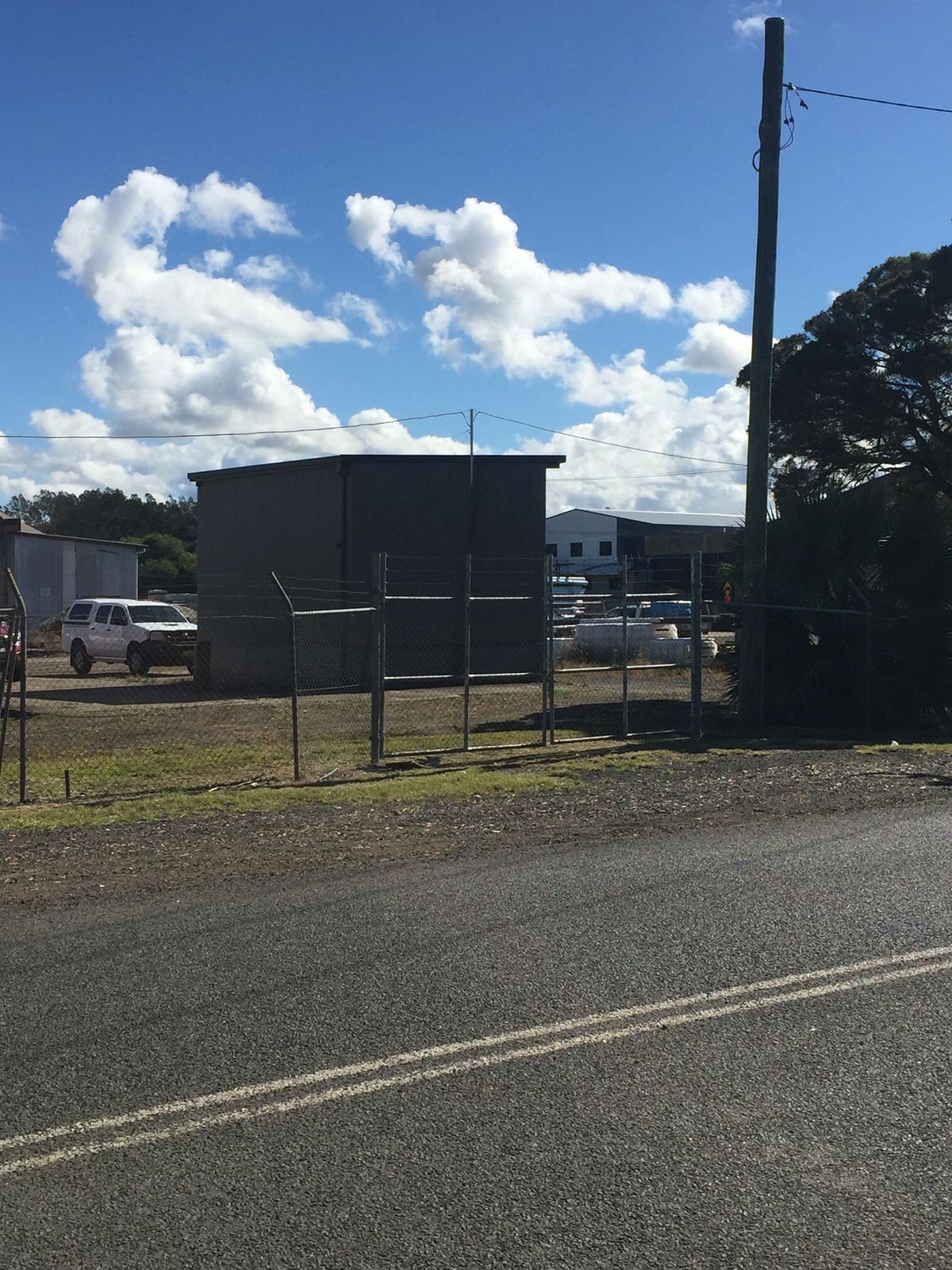 shed of approx. 30 sqm in size. Also includes a large section of commercial land including sections of hard stand. Large enough to manoeuvre trucks and similar machinery. The complex is fully fenced for extra security.