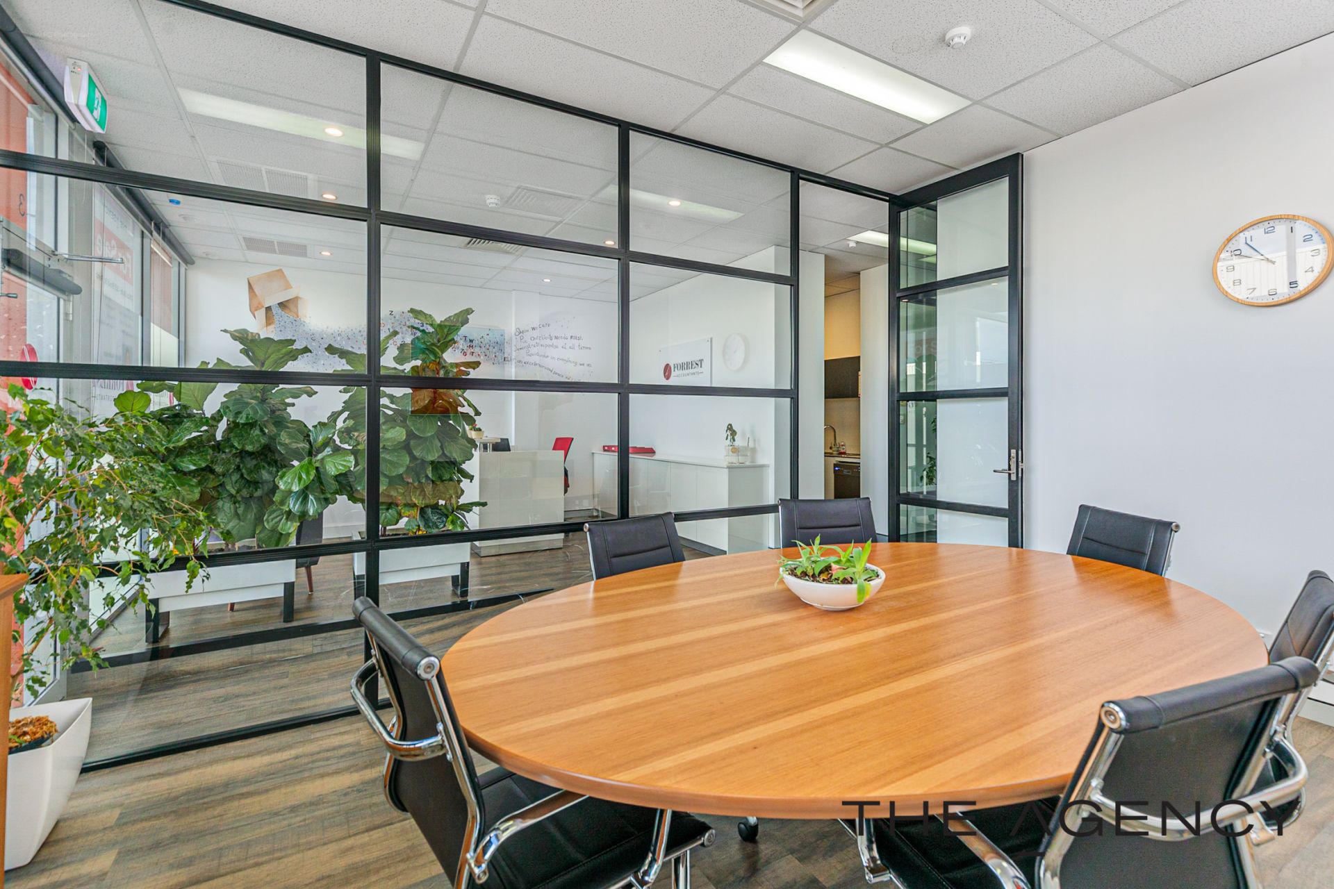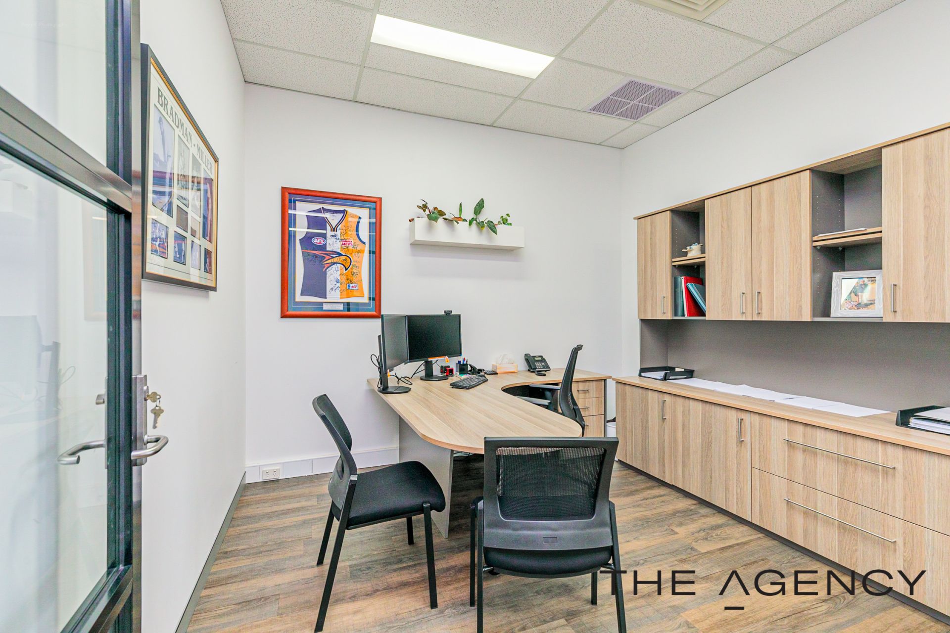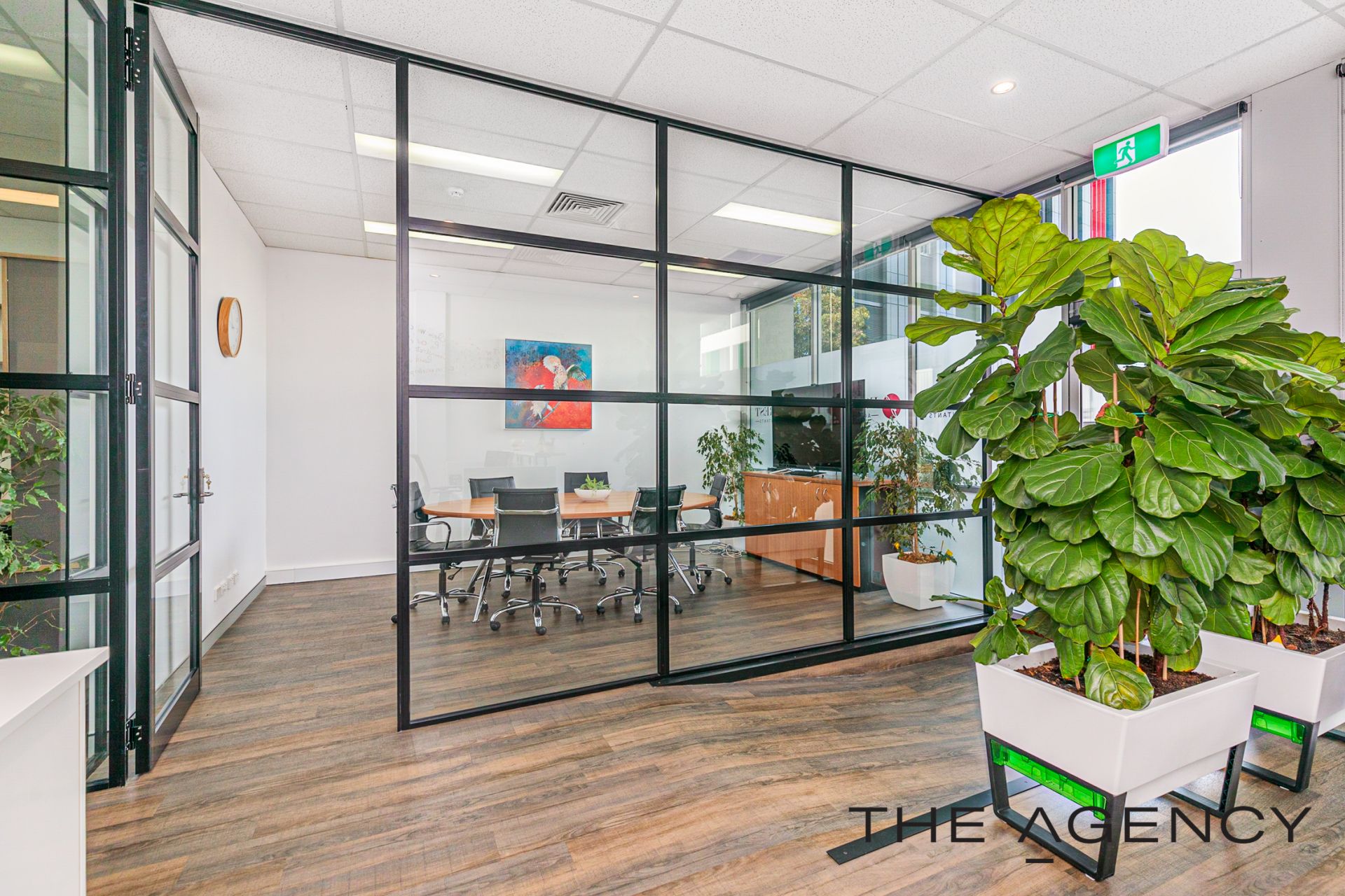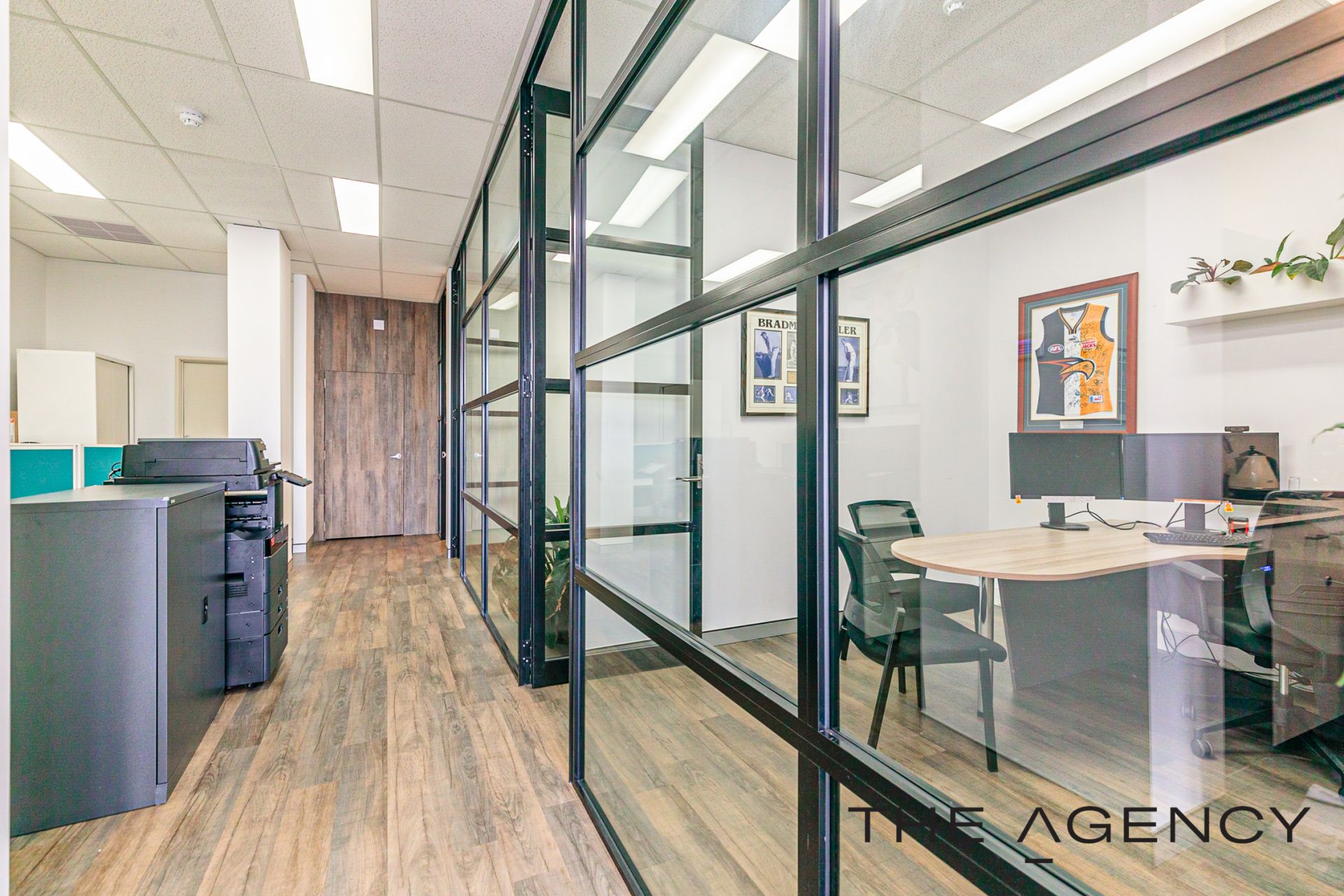 The office fit out oozes that modern vibe offering an industrial feel with the framed glass partitioning, wood look flooring making it a light and bright office, with design features of wall art, planter boxes to ensure it is an inviting place to work. Full fit out included with the option to retain most of the office furniture in the purchase, it makes for an easy transaction and for you to move in. Get connected and get started within days .