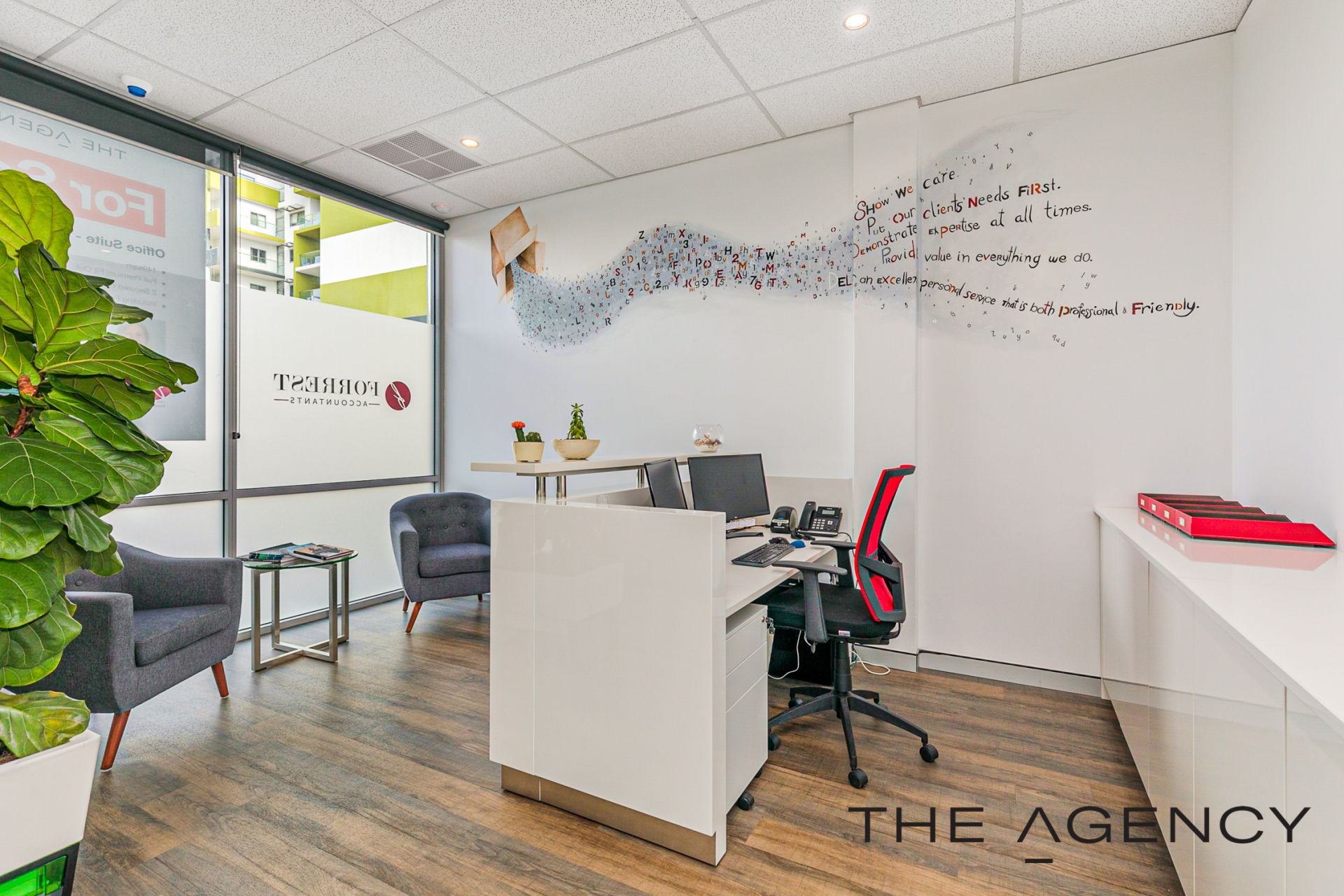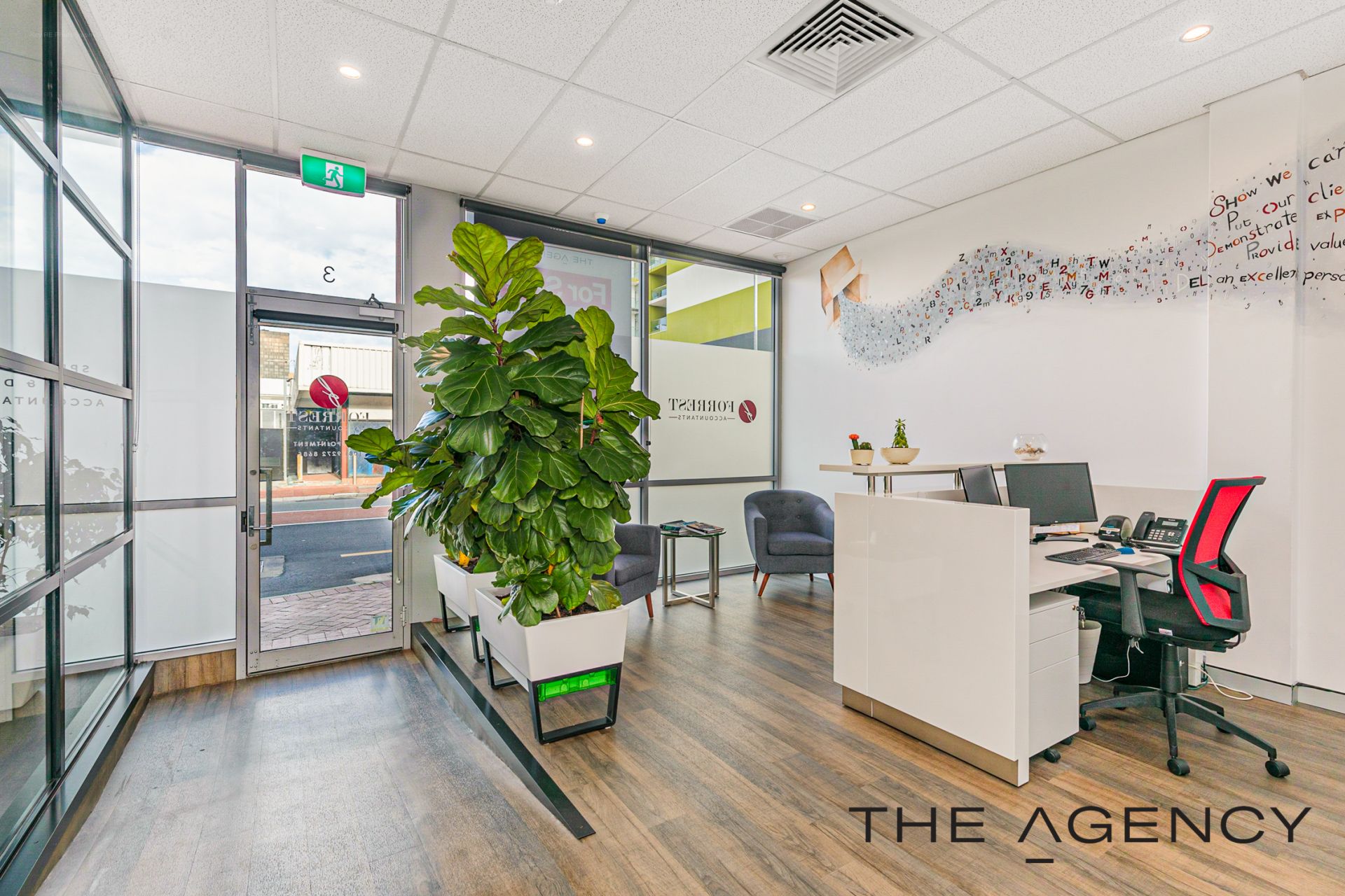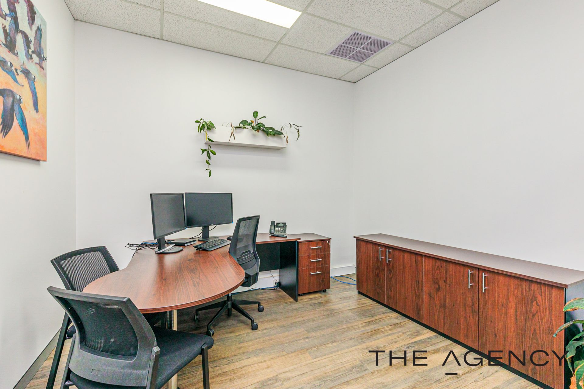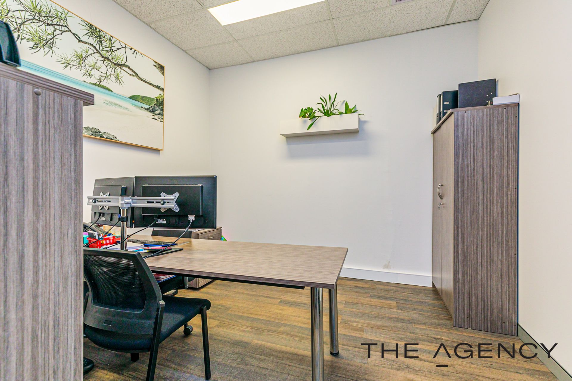 The office fit out oozes that modern vibe offering an industrial feel with the framed glass partitioning, wood look flooring making it a light and bright office, with design features of wall art, planter boxes to ensure it is an inviting place to work. Full fit out included with the option to retain most of the office furniture in the purchase, it makes for an easy transaction and for you to move in. Get connected and get started within days .