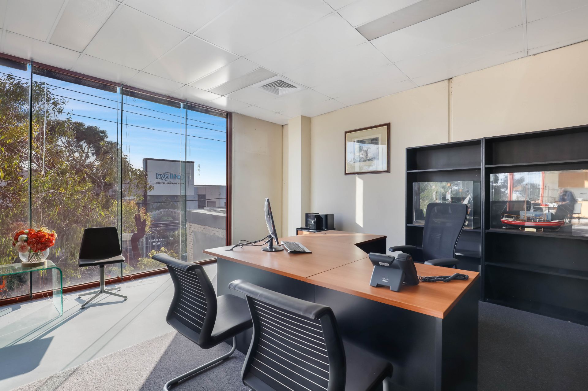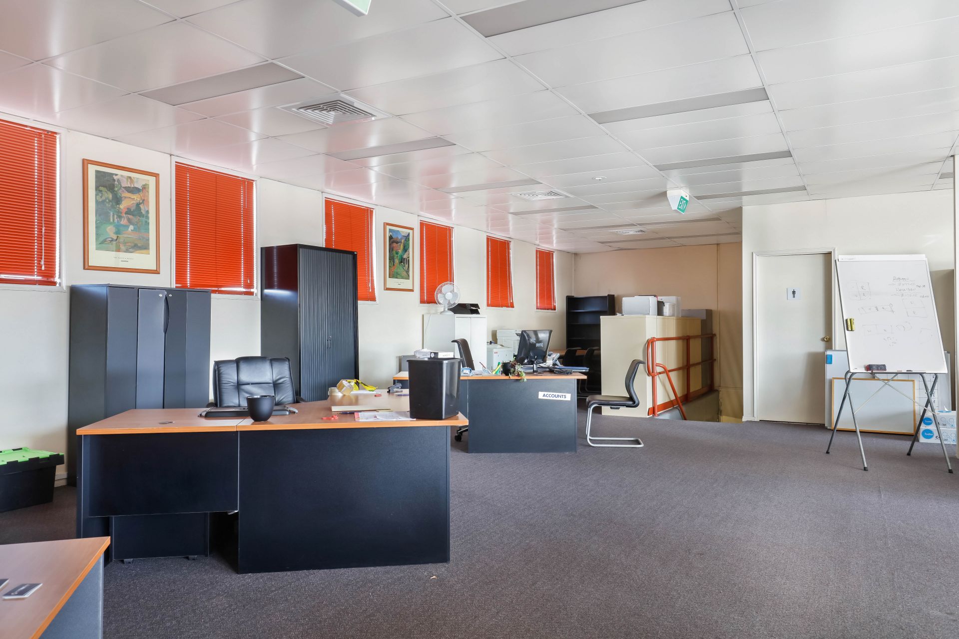 - Spacious carpeted office/mezzanine area