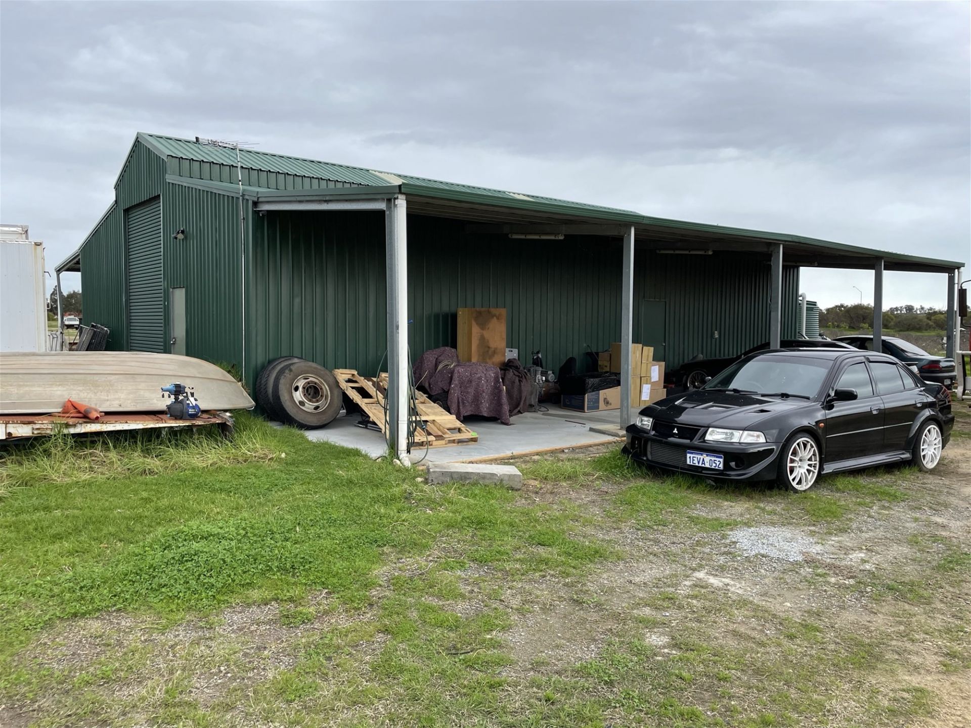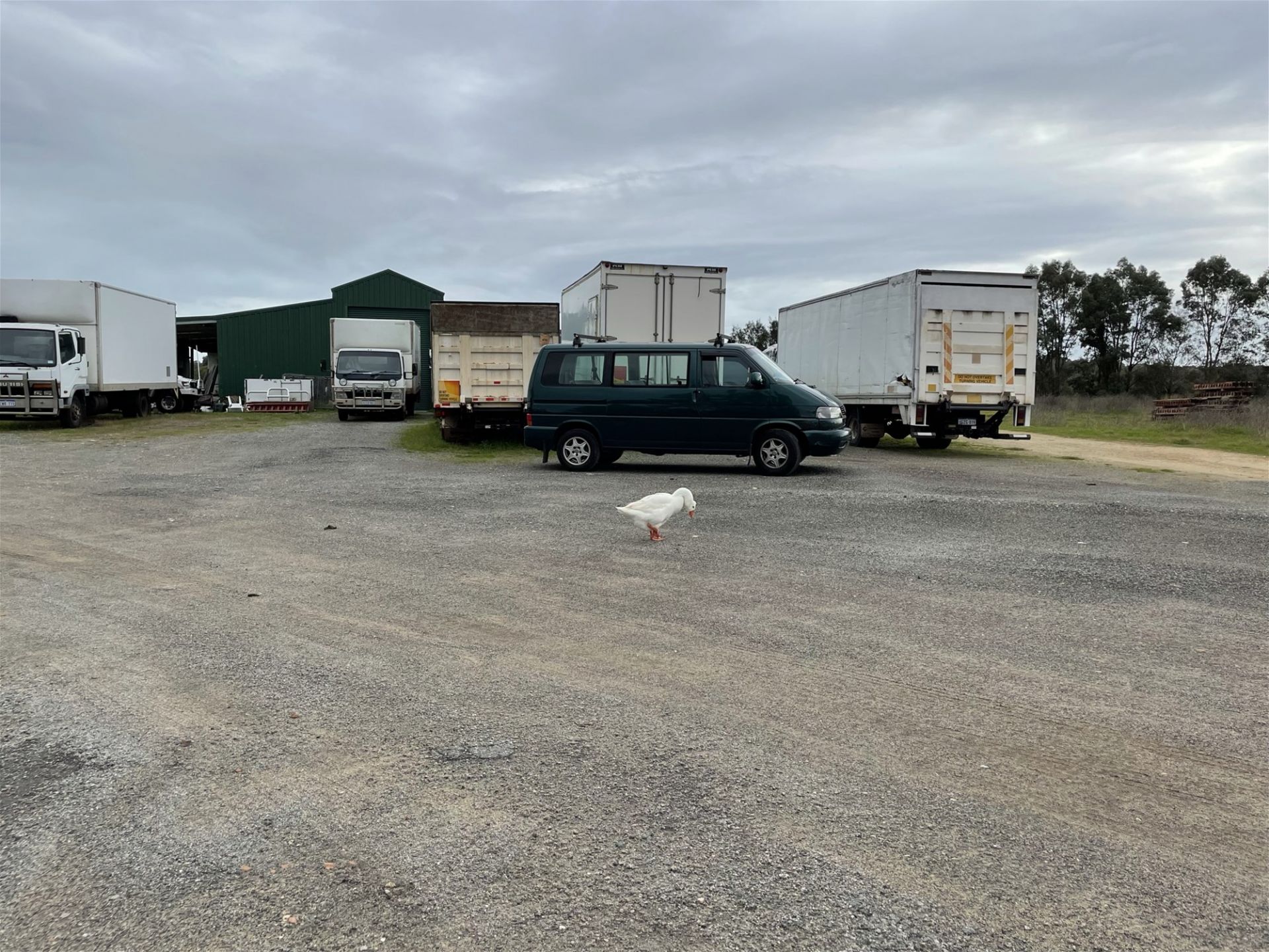 Currently there is a large shed which is leased on a periodical basis with some hardstand which is also leased. Most of the property has been filled with clean fill which means that most of it is usable (no low area other than the dam at the entry.)