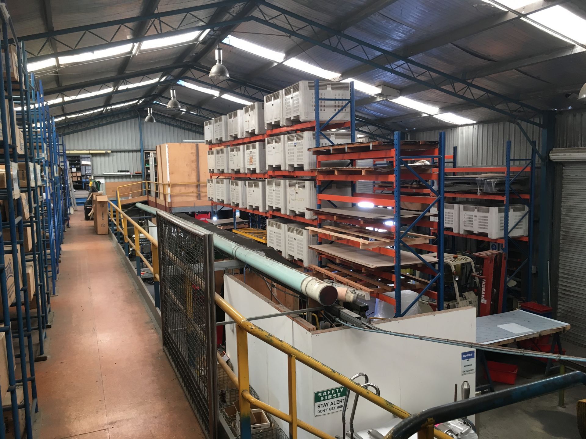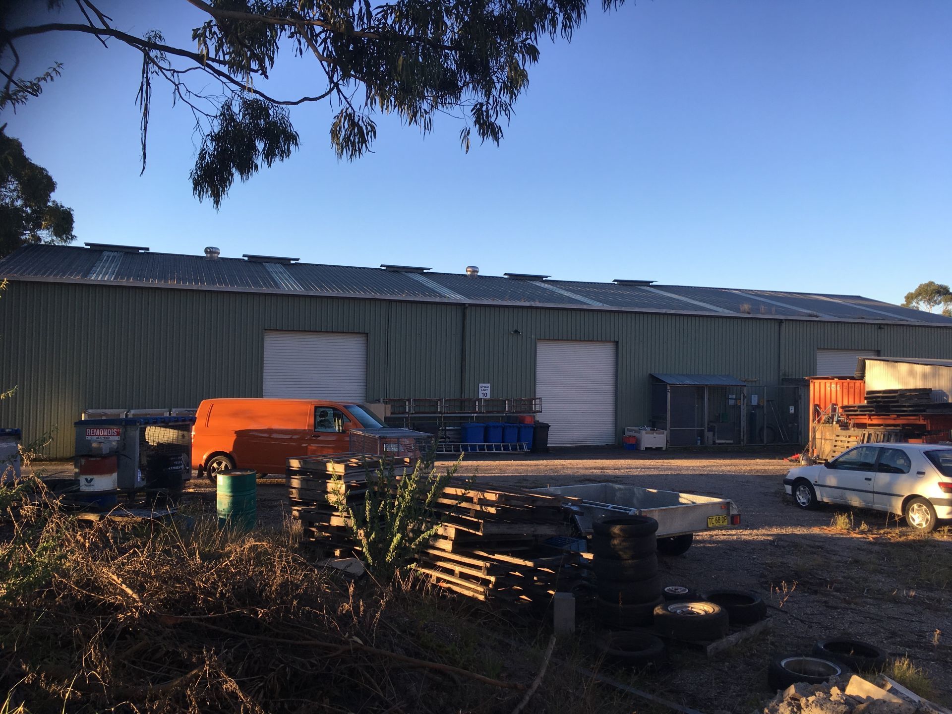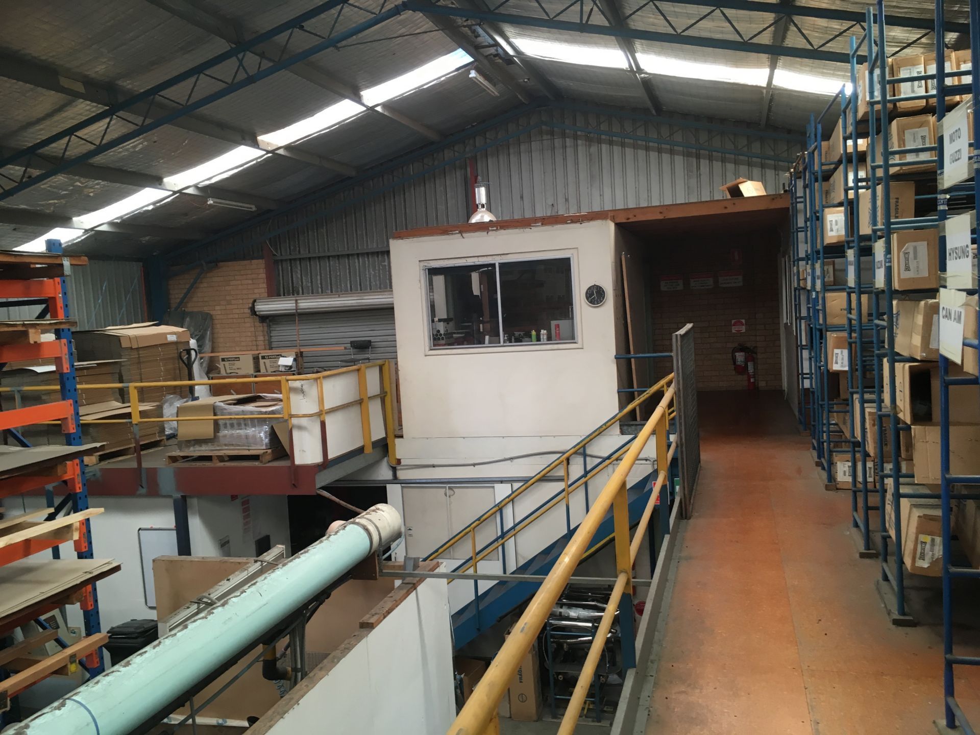 Existing Industrial Colourbond Factory Building 15 x 42m (630sq mtrs) x 5.4m to eves with extensive mezzanine area (approx 365sq mtrs) Power supply 3 phase currently 80 amp aerials to pole then 200 amp to manufactured board with power factor correction unit installed and 3 distribution boards with extensive 3 phase outlets throughout.