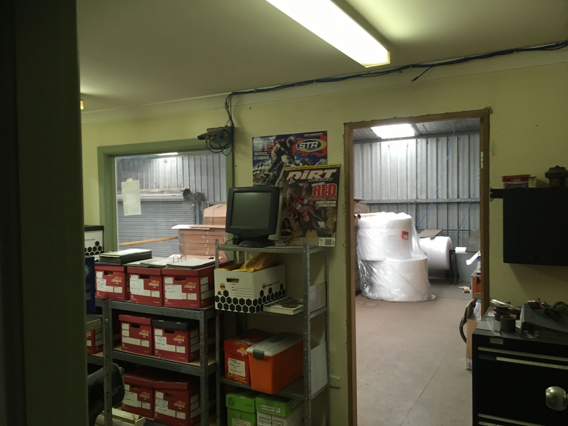 1 main Office at ground floor, 2 offices upstairs, 4 roller doors, 2 PA doors 2 additional exit doors.
