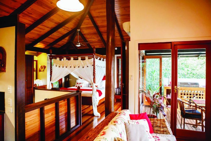 The property has been designed to be as low maintenance as possible, combining natural Rainforest areas, with easy care landscaped gardens, winding bitumen roads to the cottages, fenced horse paddock and arena. There is a huge storage shed for property maintenance and comes with a John Deere 4wd ride-on mower and Stihl garden equipment. There is a back-up generator in the event of power outage. Water supply consists of a full flow bore, ensuring permanent water for the 36,000 litre storage tank. In addition the property comes with 2 work vehicles; (cleaning van and check-in car). Solar power also supports the property, keeping power bills low.