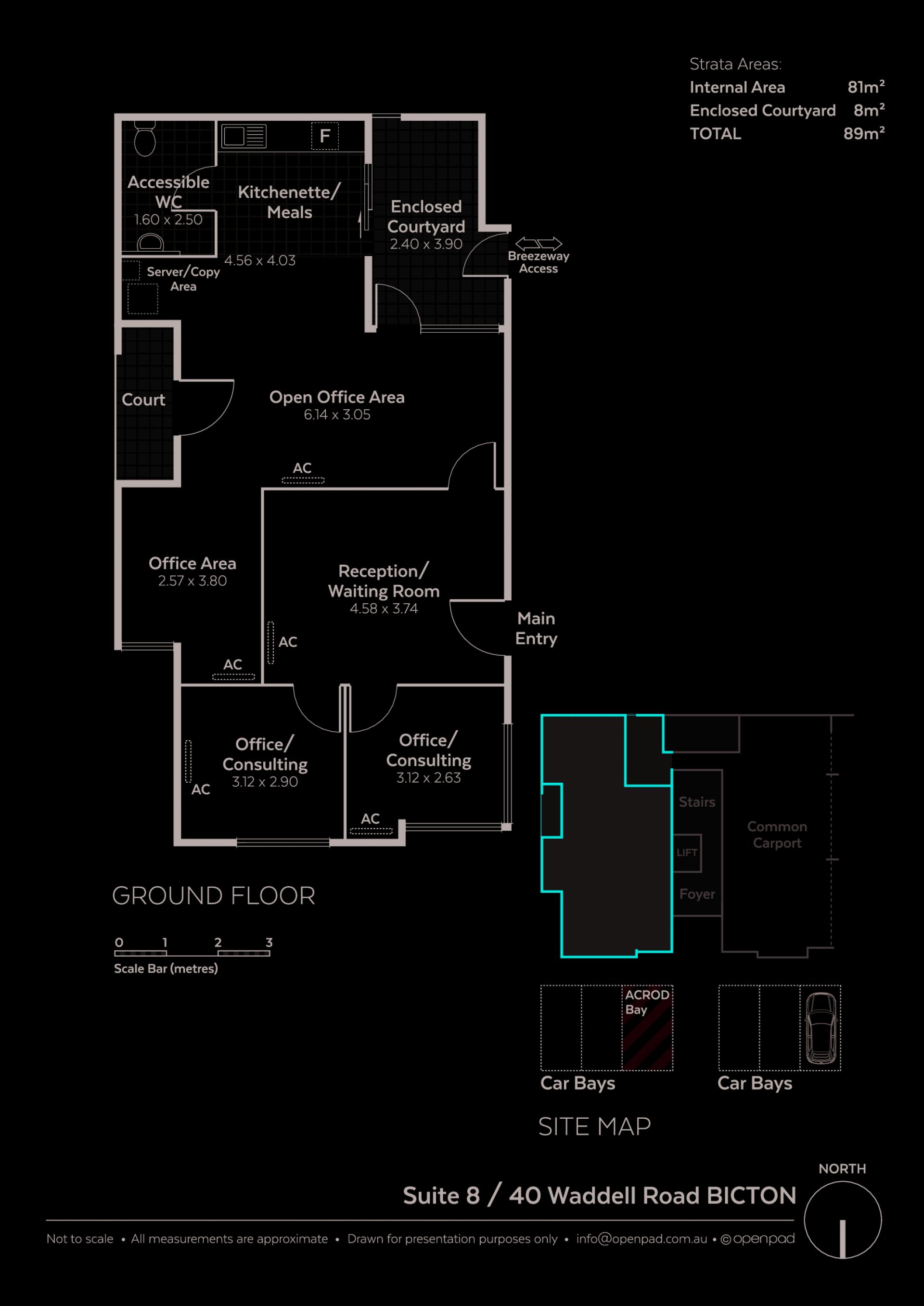 Ground floor air conditioned 81sqm strata office (89sqm total with courtyard) is offered with a full fit out and is superbly located adjacent to Melville Plaza, within the Melville District Centre and on the Canning Highway public transport corridor.