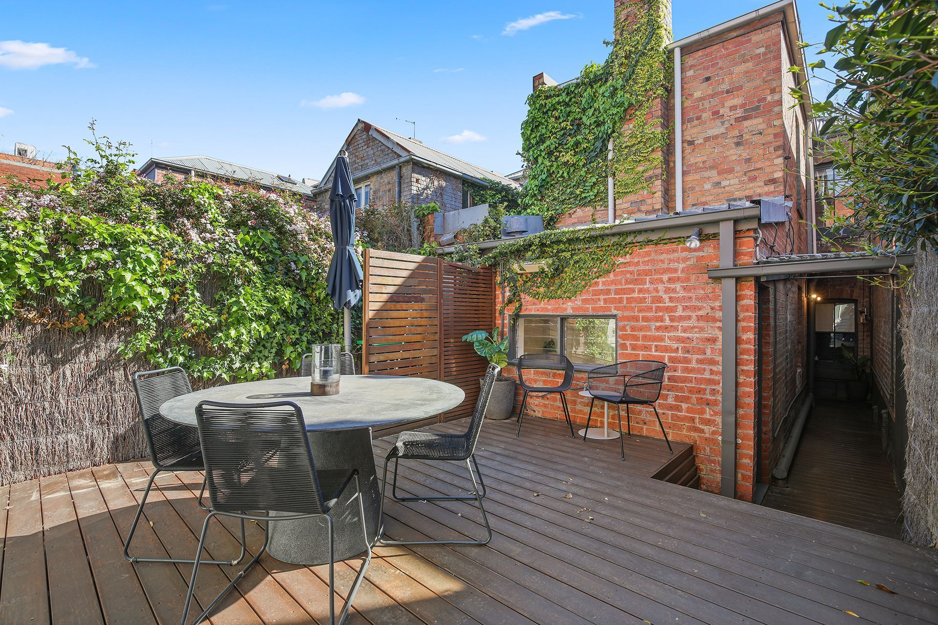 The fully decked courtyard offers a great outdoor area and acts as an excellent suntrap for many hours a day, winter or summer.