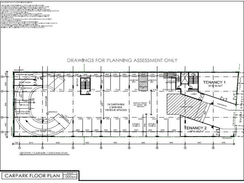 An alternate scheme could be provided for a mixed use residential/commercial building with one commercial floor of 940 sq metres plus 22 apartments over the three upper levels
