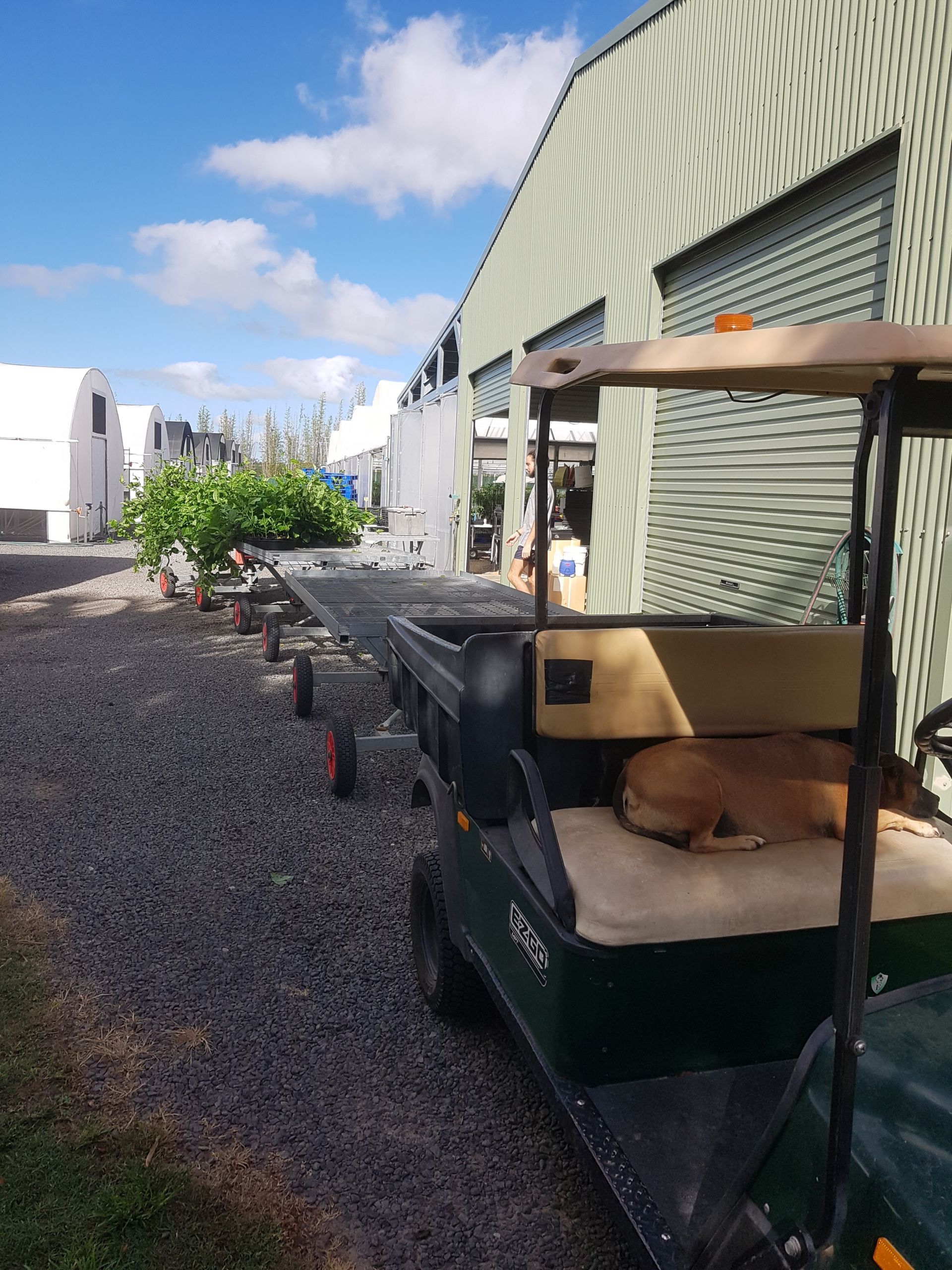 * All hothouses & sun hardening areas have overhead irrigation, taps at either end, gravel on top of weed mat, on top of the plastic, draining into agi-drains.