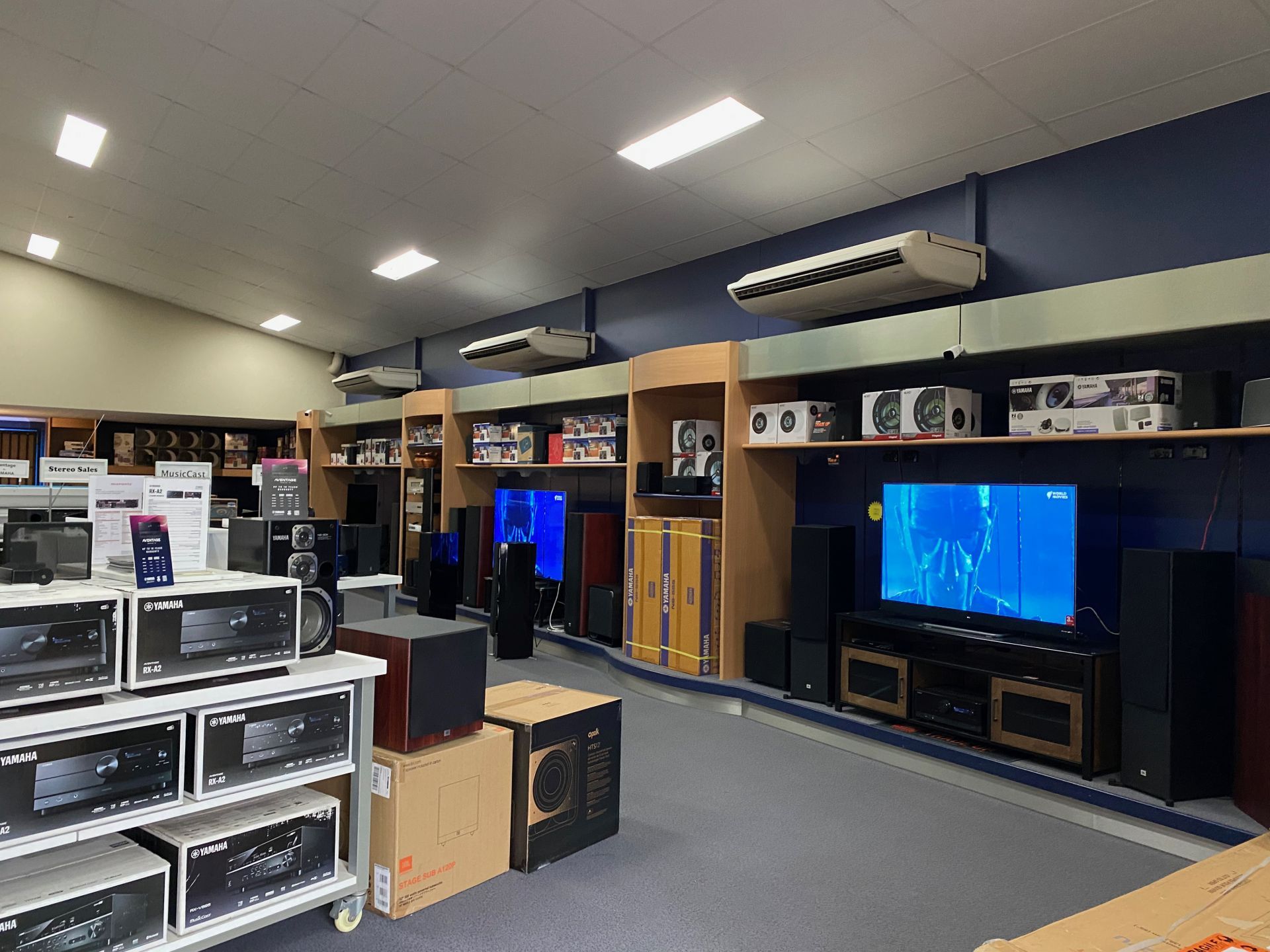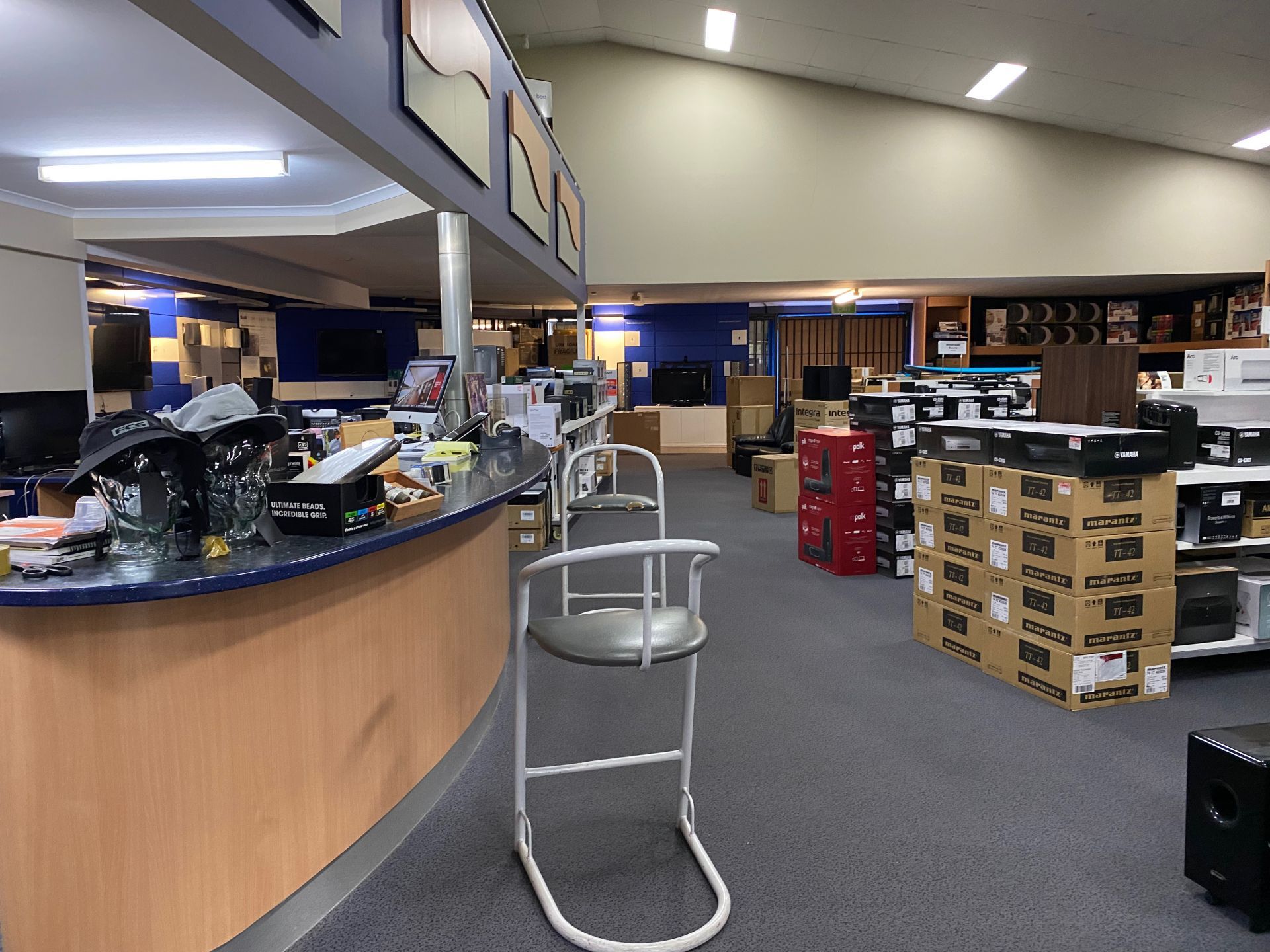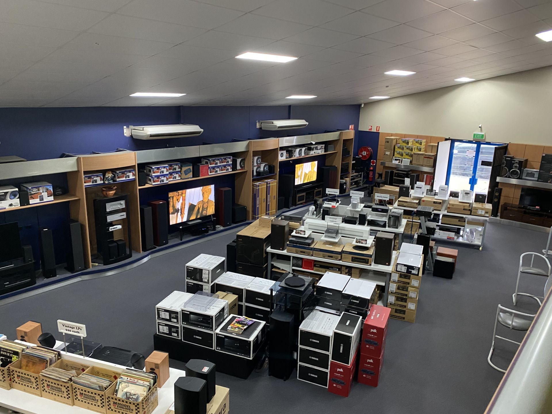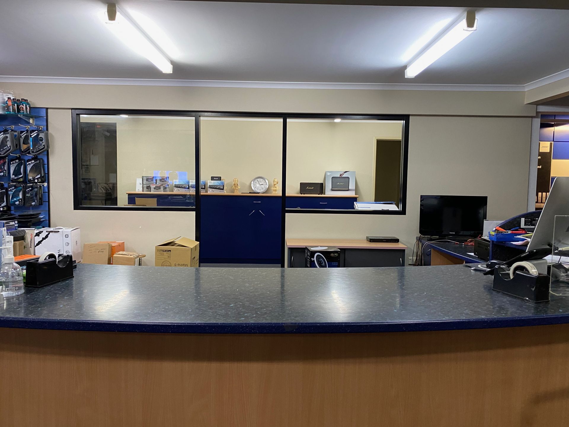 It includes a large ground floor showroom, with two adjacent storerooms for easy access. This property also presents three smaller offices and one larger space on the mezzanine floor above the main showroom.