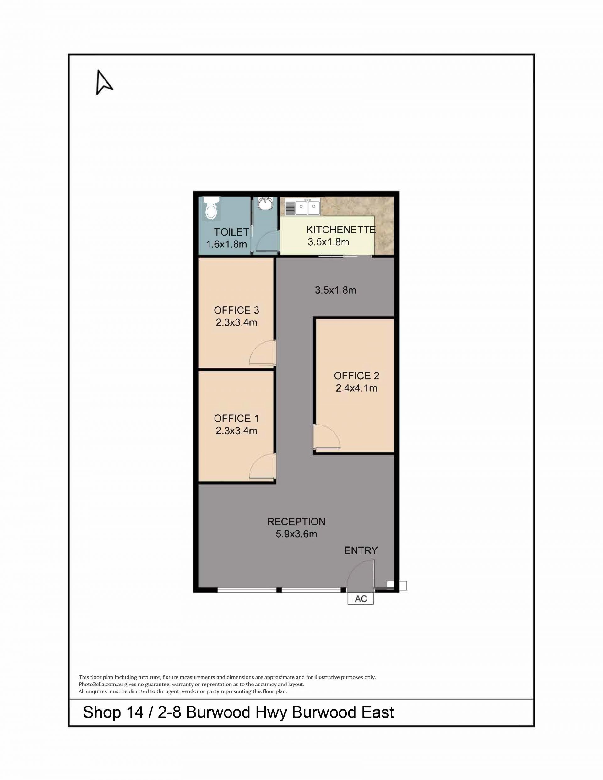 • Current fit-out features 3 dedicated offices, kitchenette, toilet and reception area