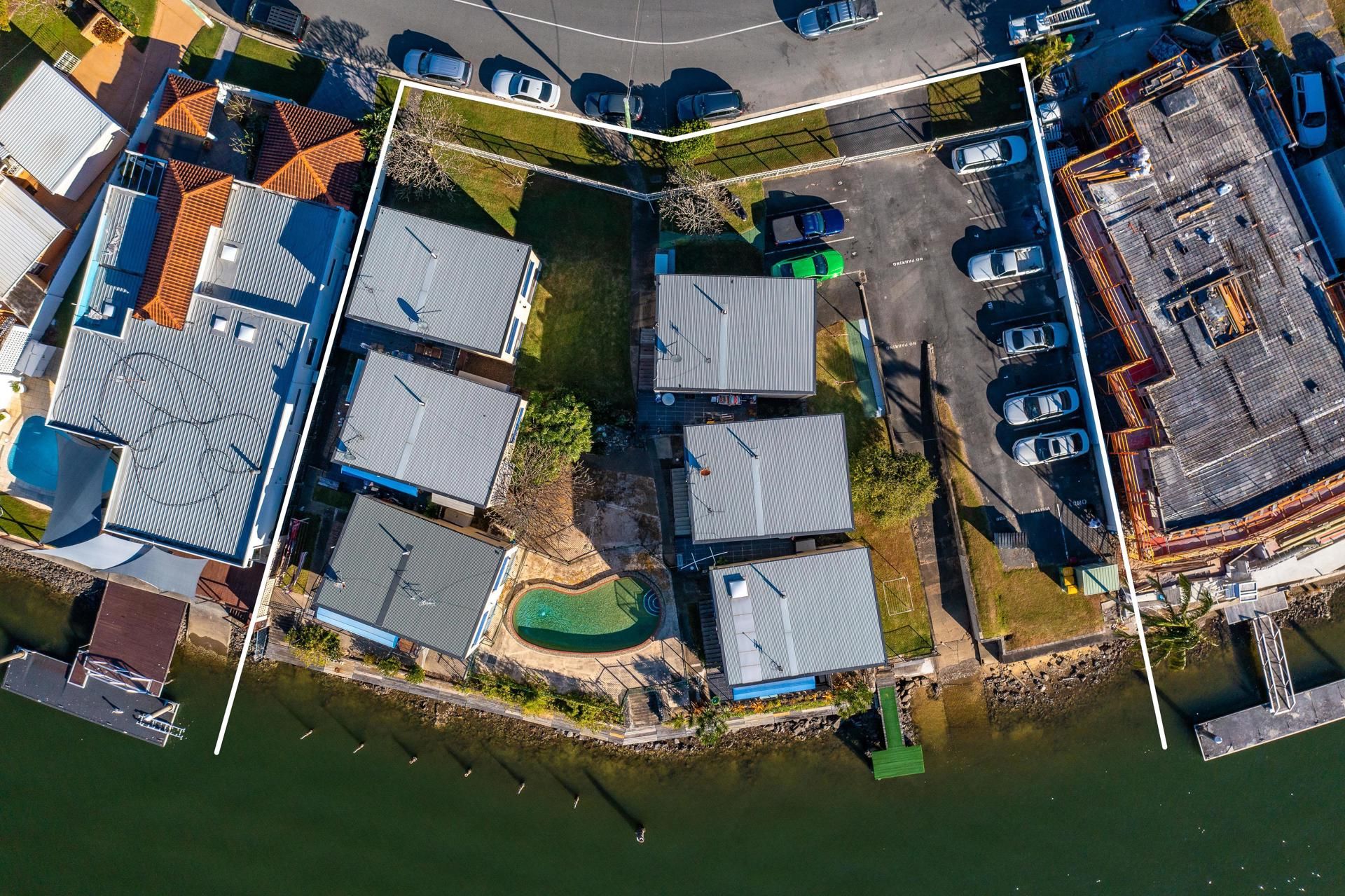 Point position North East to Main River 1,710sqm of prime Real Estate with approx. 58 metres of wide river frontage, this is a unique opportunity to secure this amalgamated development site with an amazing outlook looking North East up and down the Main River with Surfers Paradise, Main Beach & Budds Beach at your backdoor, it is simply the best.