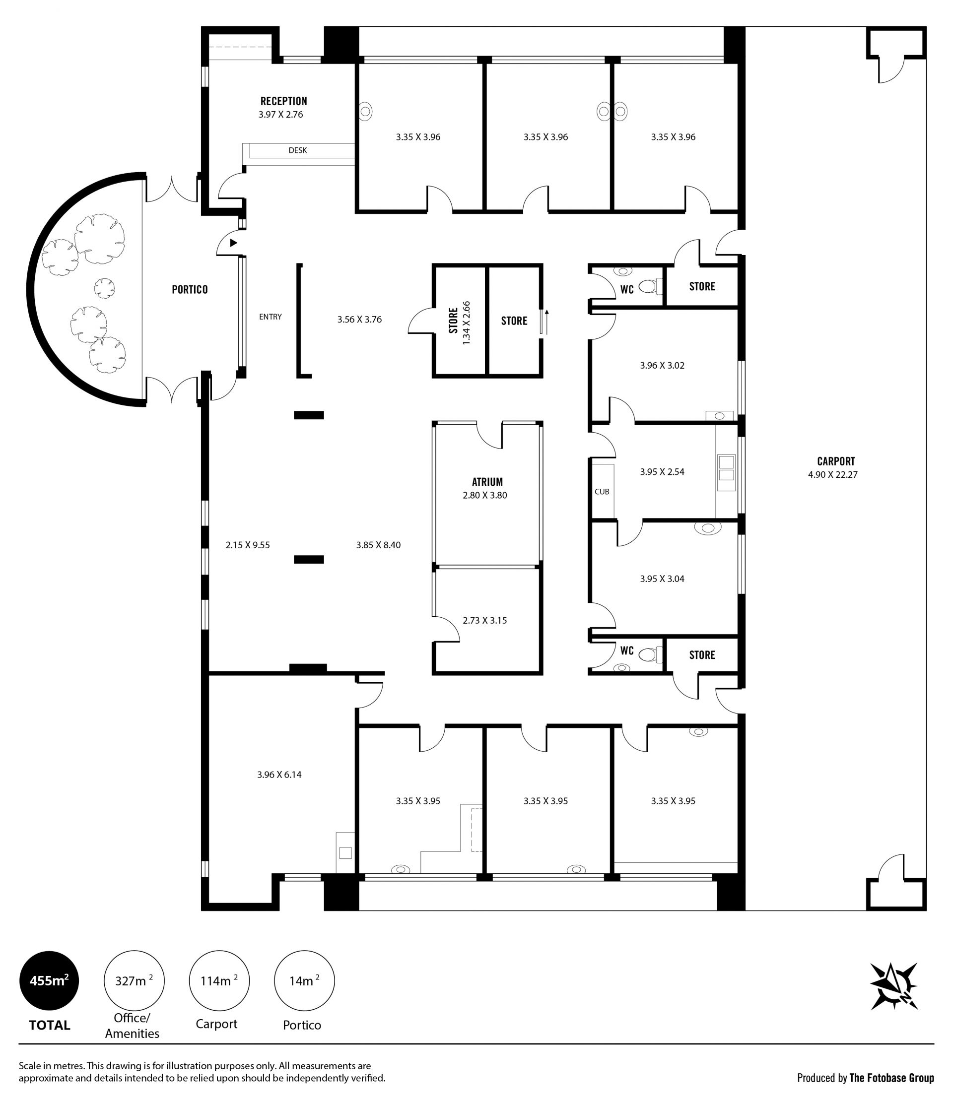 The total building area is 327sqm and made up of 10 private consulting rooms, reception area, large foyer waiting area, 4 storage rooms, male and female amenities, and central atrium. Fantastic security which includes a monitored alarm system, security cameras, bared windows, and additional security gates to the front Portico entry as well as the rear carport entry points.