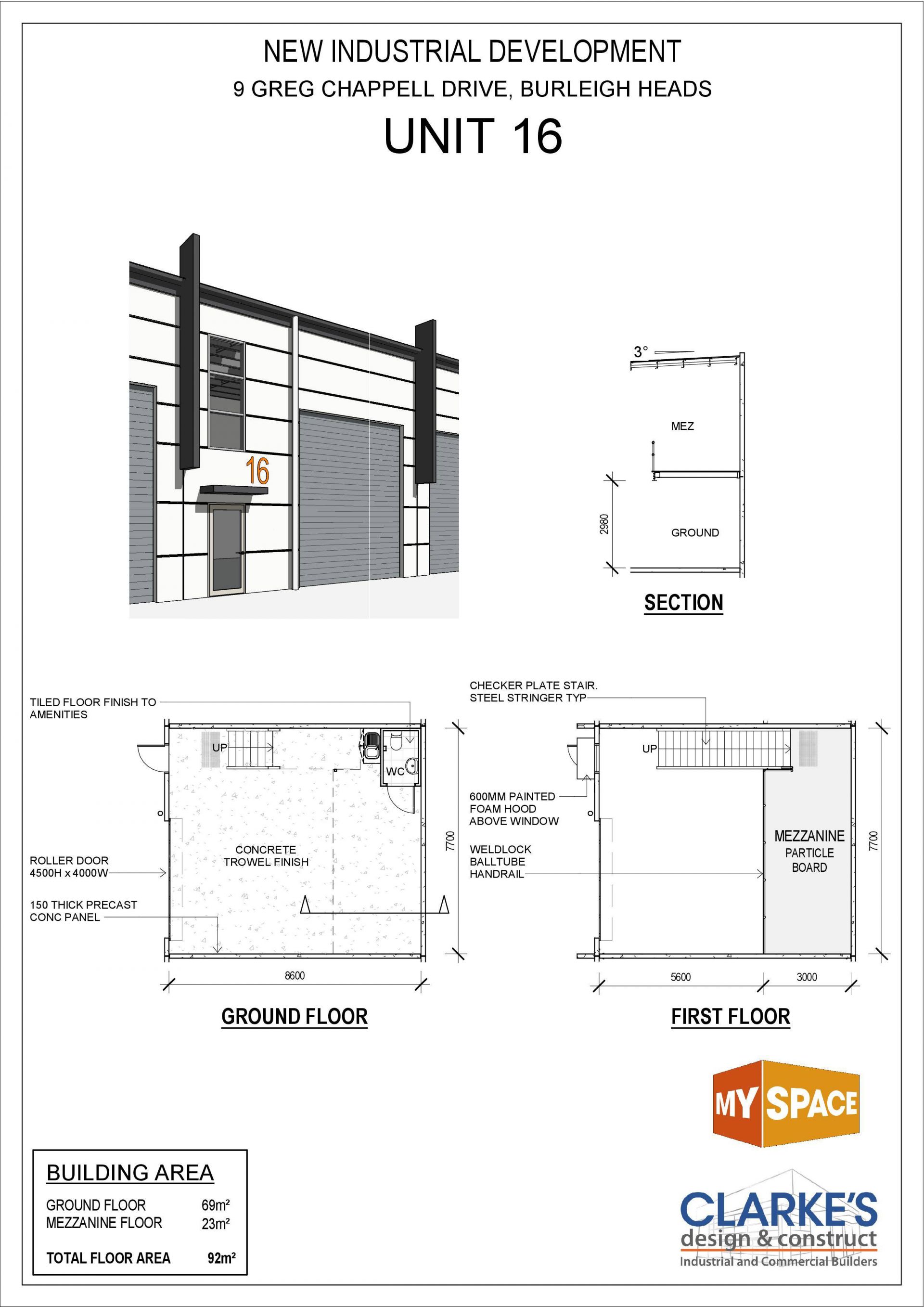 - 69m2 ground floor area plus 23m2 approved storage mezzanine