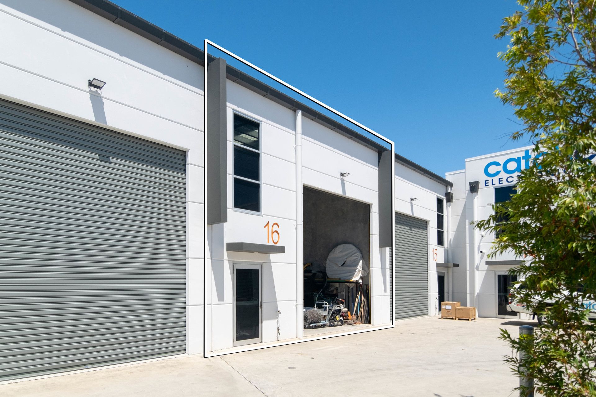 - Electric roller door and professional glass entry door
