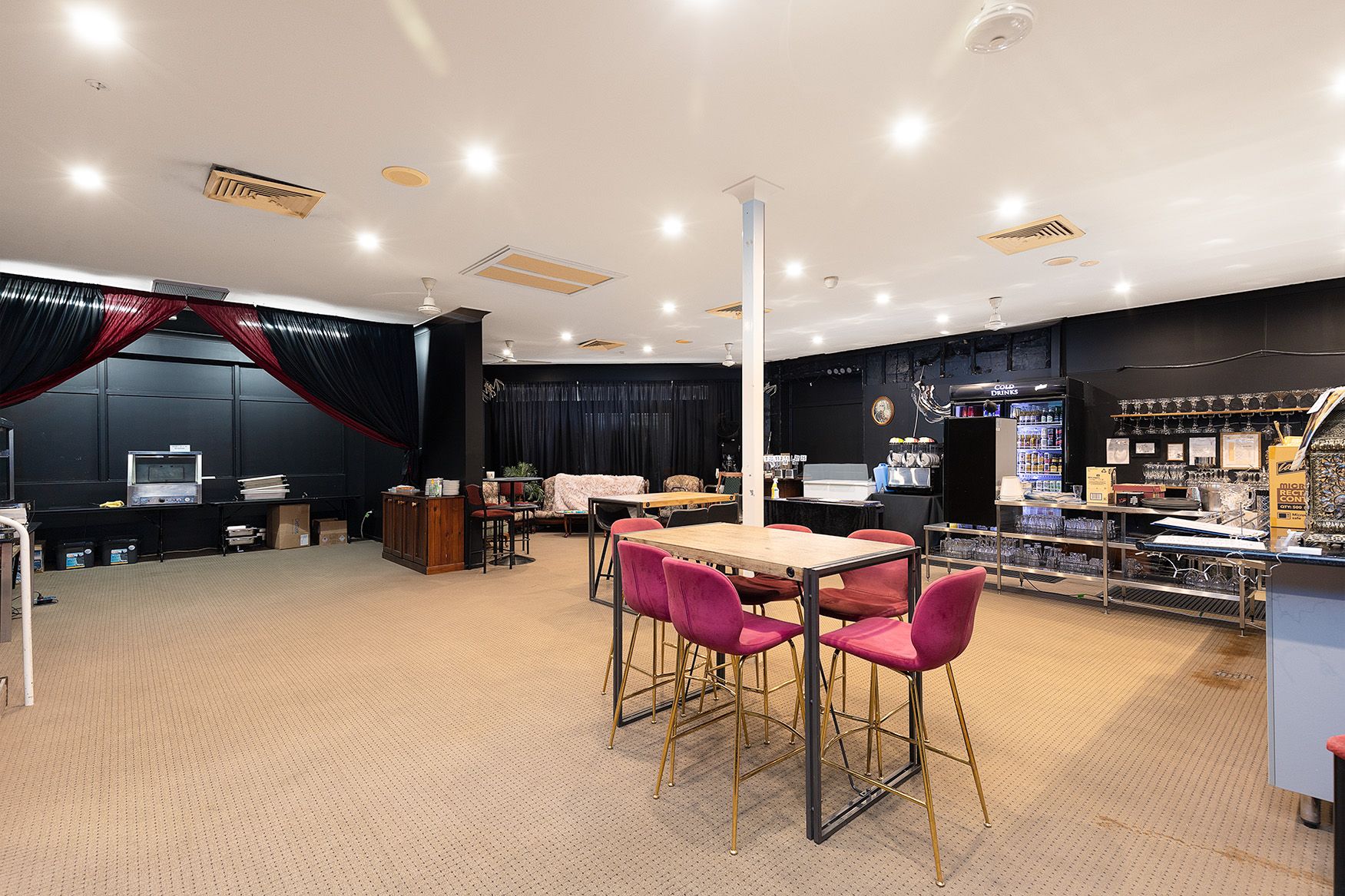 Is fitted out with a commercial kitchen and bar and is fully air-conditioned and one of the very few with plenty of car parking on site and on the street.