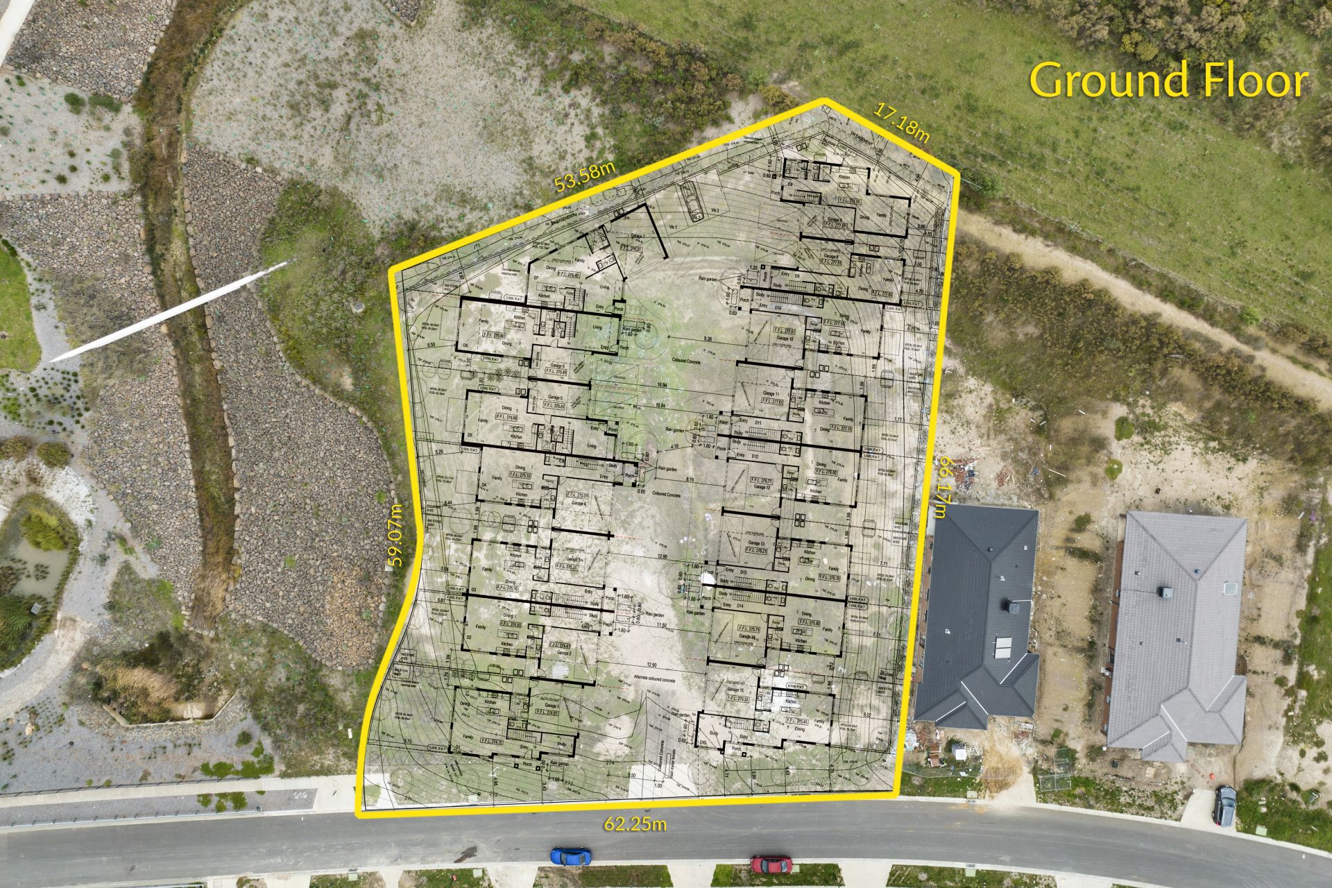 - 15 quality townhouses, 11 with double garage, 4 with single garage with additional car space