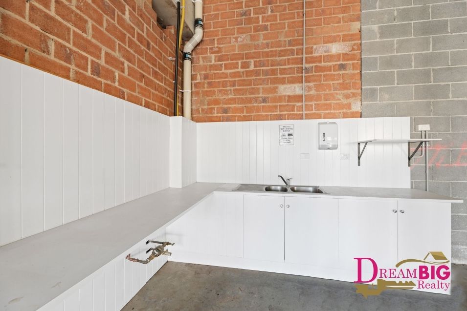 - Large open space with glass façade, high ceilings, and a decent size kitchen for employees or takeaway.