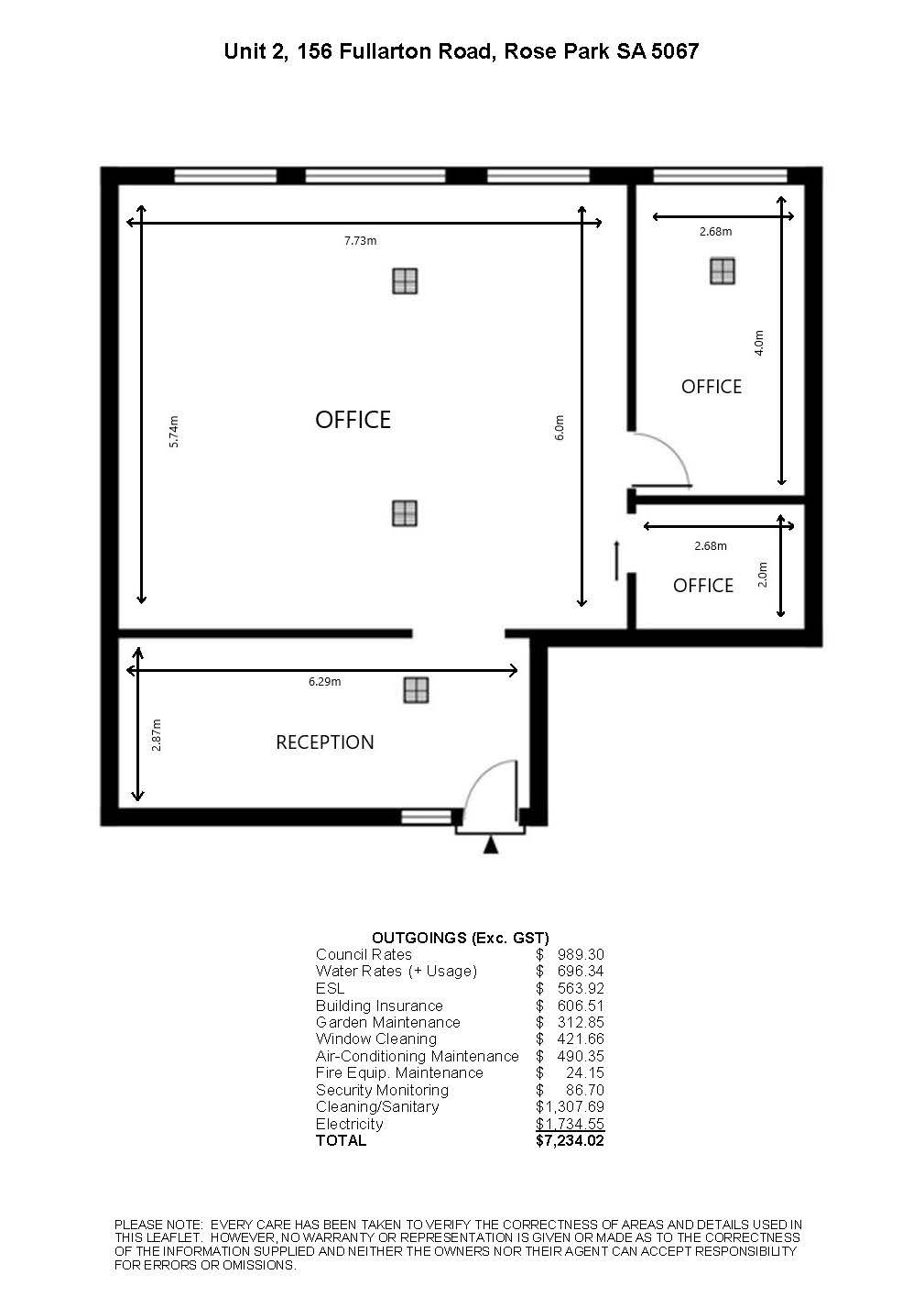$425 per week + Outgoings + GST (Inc. Car Parking)