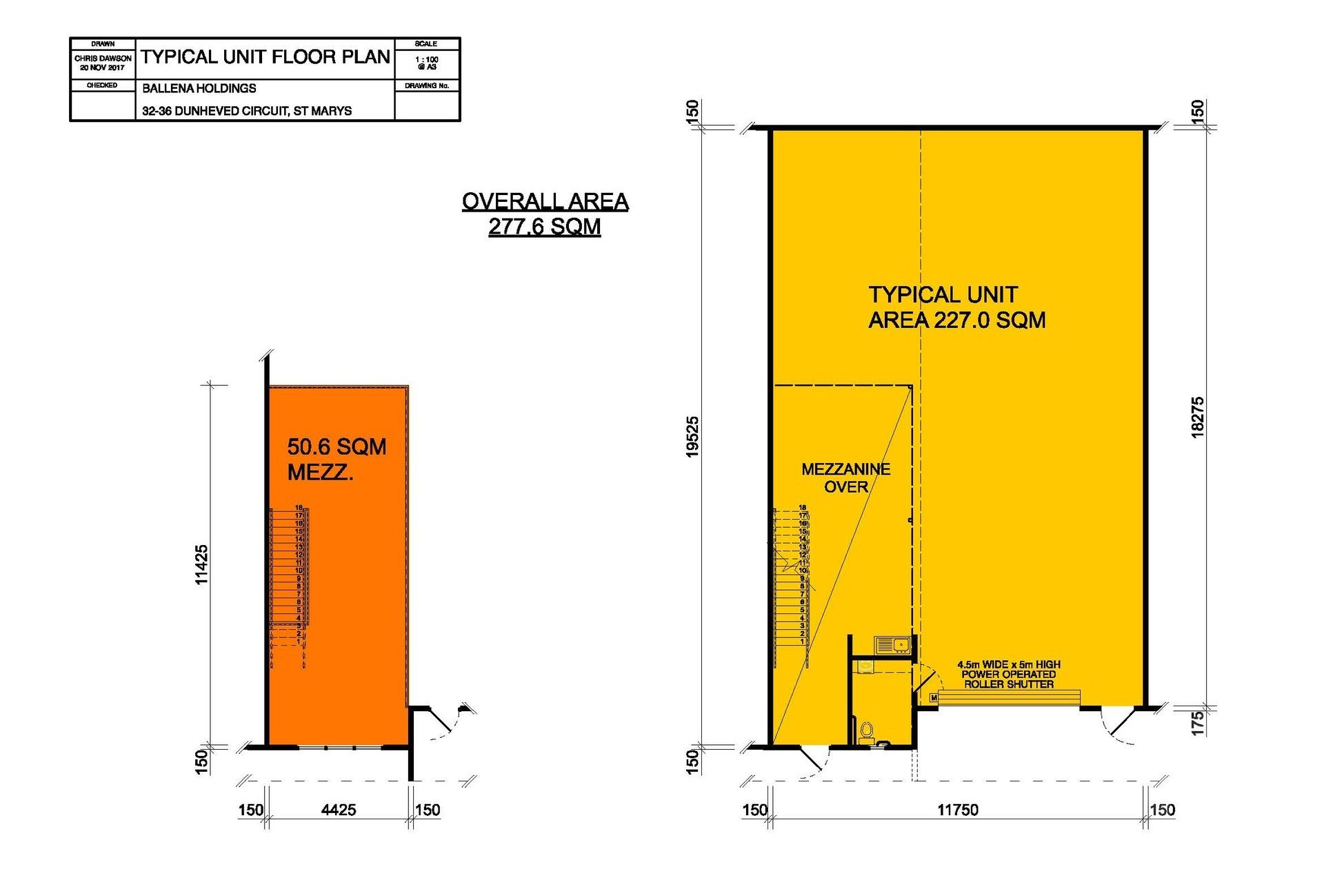- Container height roller door access 4.5m wide x 5m high.