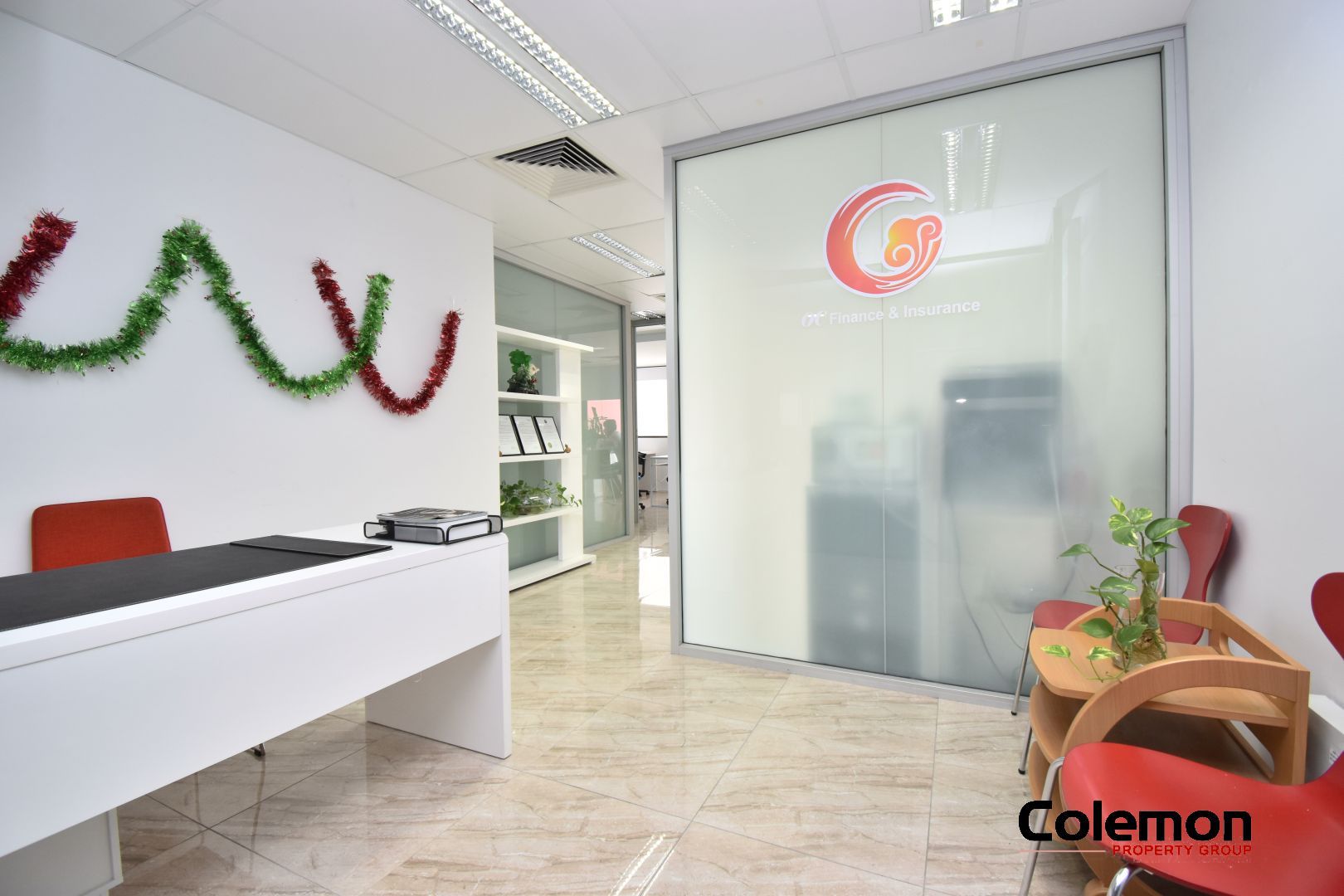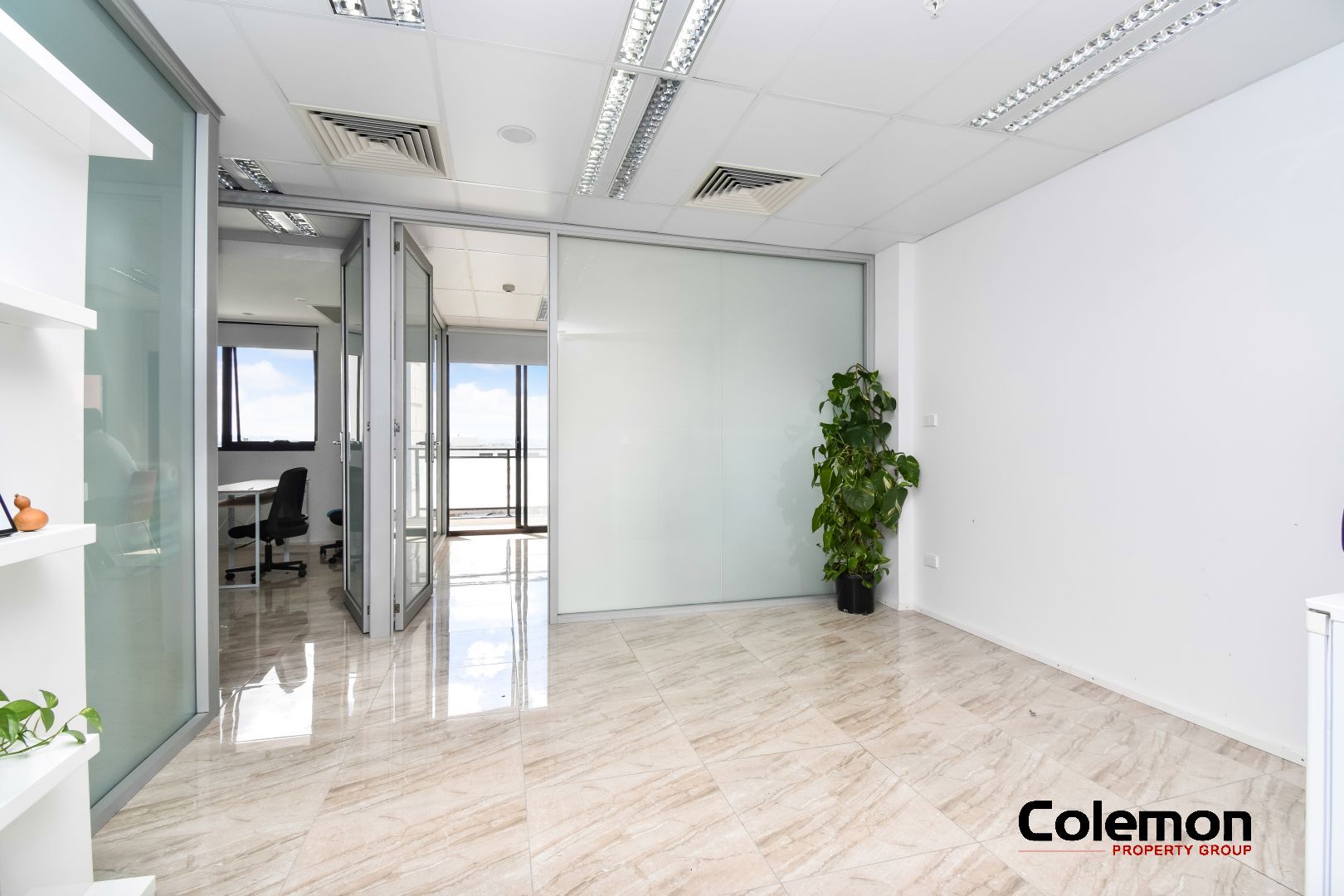 - Current configuration with reception + 3 offices & open plan work space