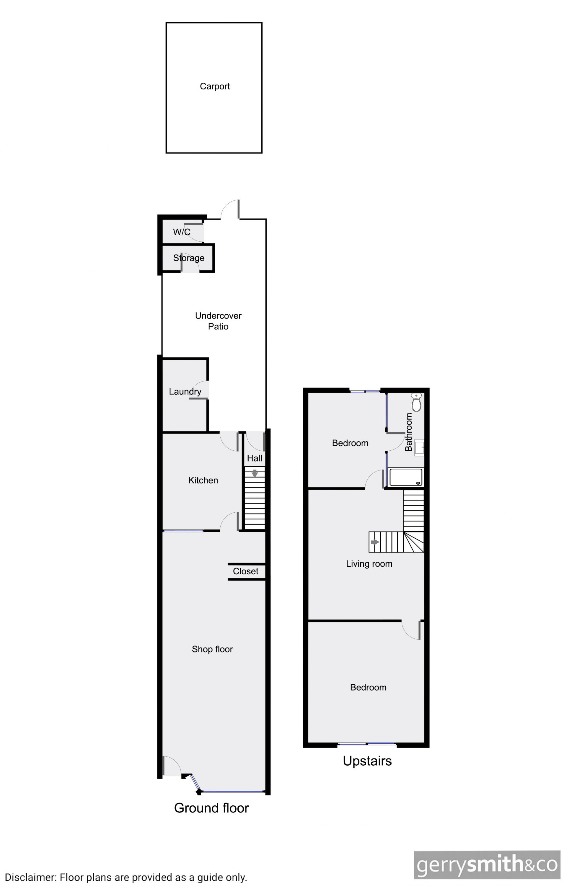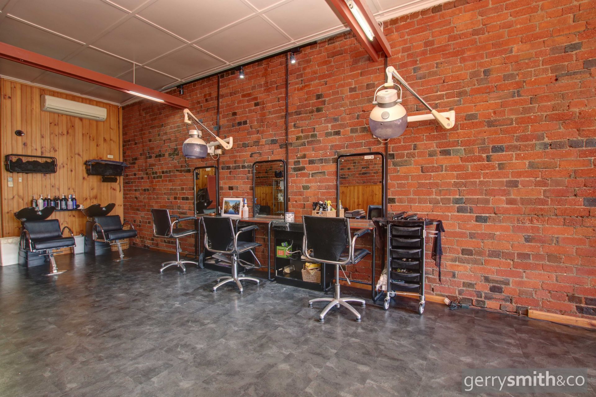 Classic commercial shop has 2 bedroom upstairs plus a living area with an open fireplace and bathroom. The residence is split level -downstairs, has a great kitchen with good storage. There is a quaint undercover courtyard that leads down to the carport.