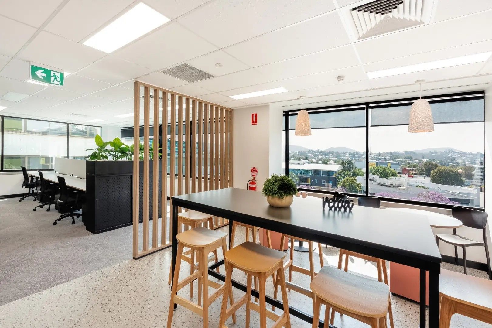 This brand-new commercial space offers a 304sqm spec fitted office oozing charm and sophistication. Experience a home-inspired atmosphere featuring soft grey hues, natural-look timber, and lush greenery on the backdrop of a serene scenery of river and mountain views - creating a refreshing, and inviting environment for your team.