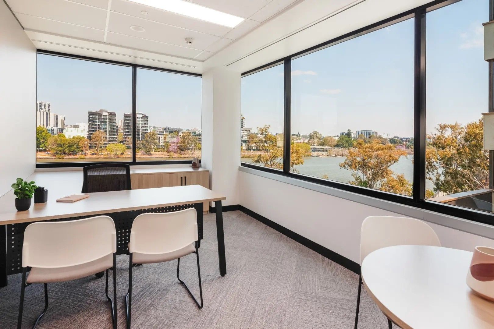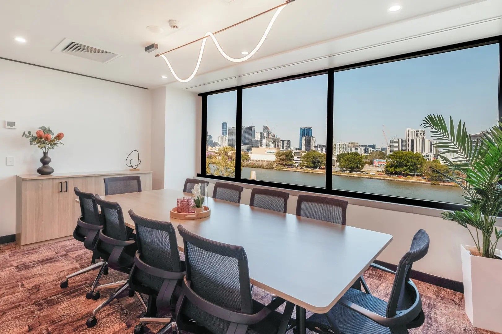 - 10-person boardroom and 6-person meeting room both with Brisbane River views