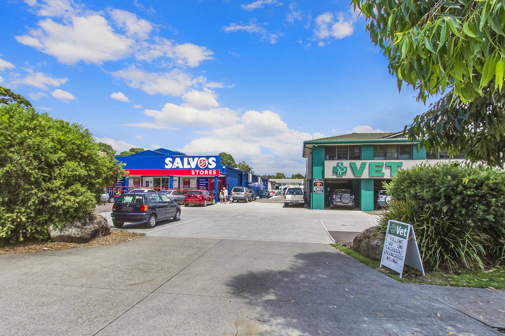- Adjacent businesses include Salvation Army Op Shop, Green cross Vets,