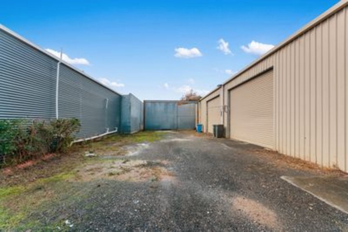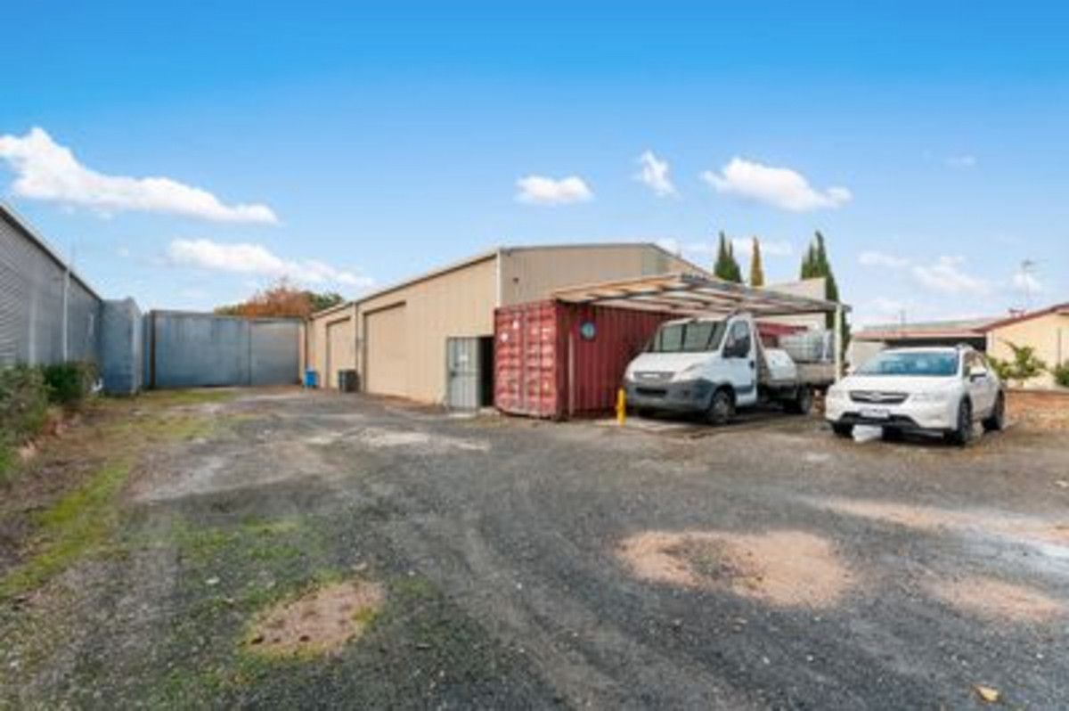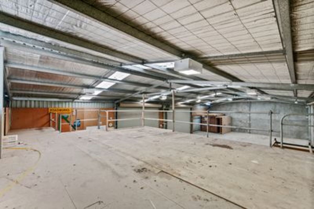 The workshop measures 26 m x 12 m with mezzanine floor, high electric roller door entrance, concrete flooring, storage, power and excellent hardstand area.
