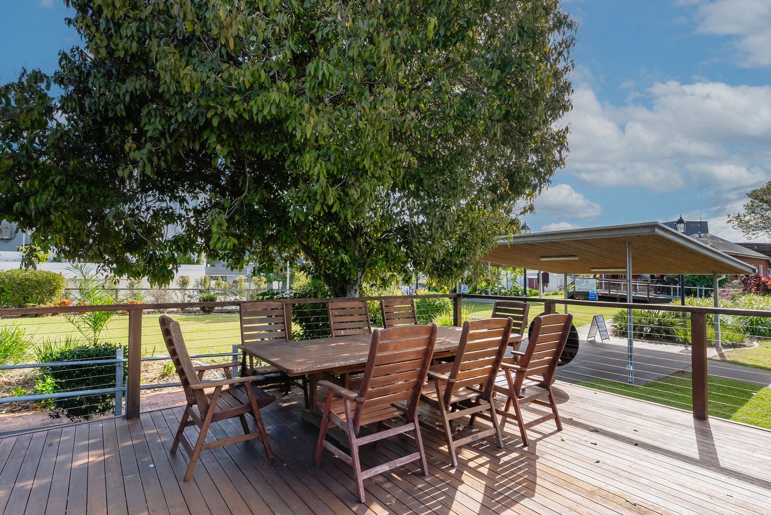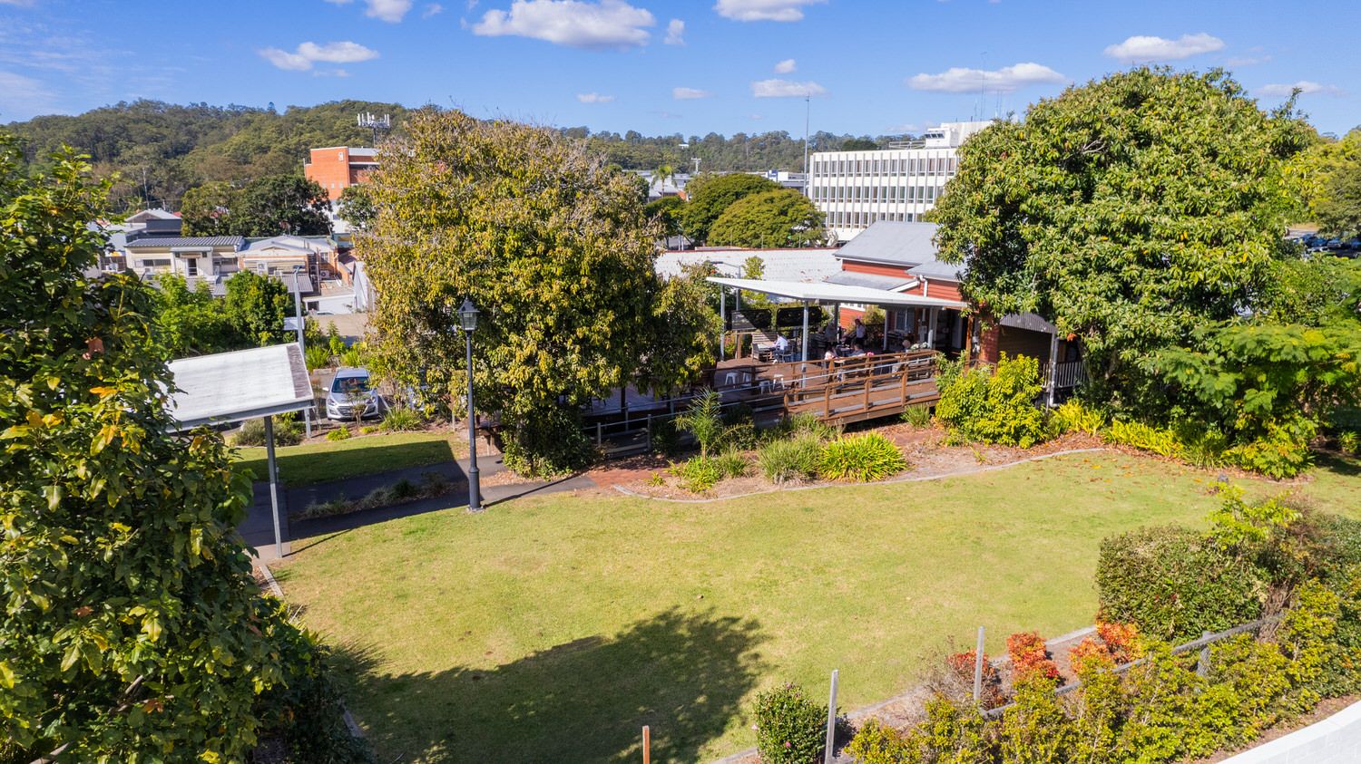 The gardens featuring a delightful blend of lush grassy areas and captivating tropical gardens have been beautifully maintained with contract gardeners and ample onsite car parking ensures all businesses and patrons convenience and aesthetic appeal.