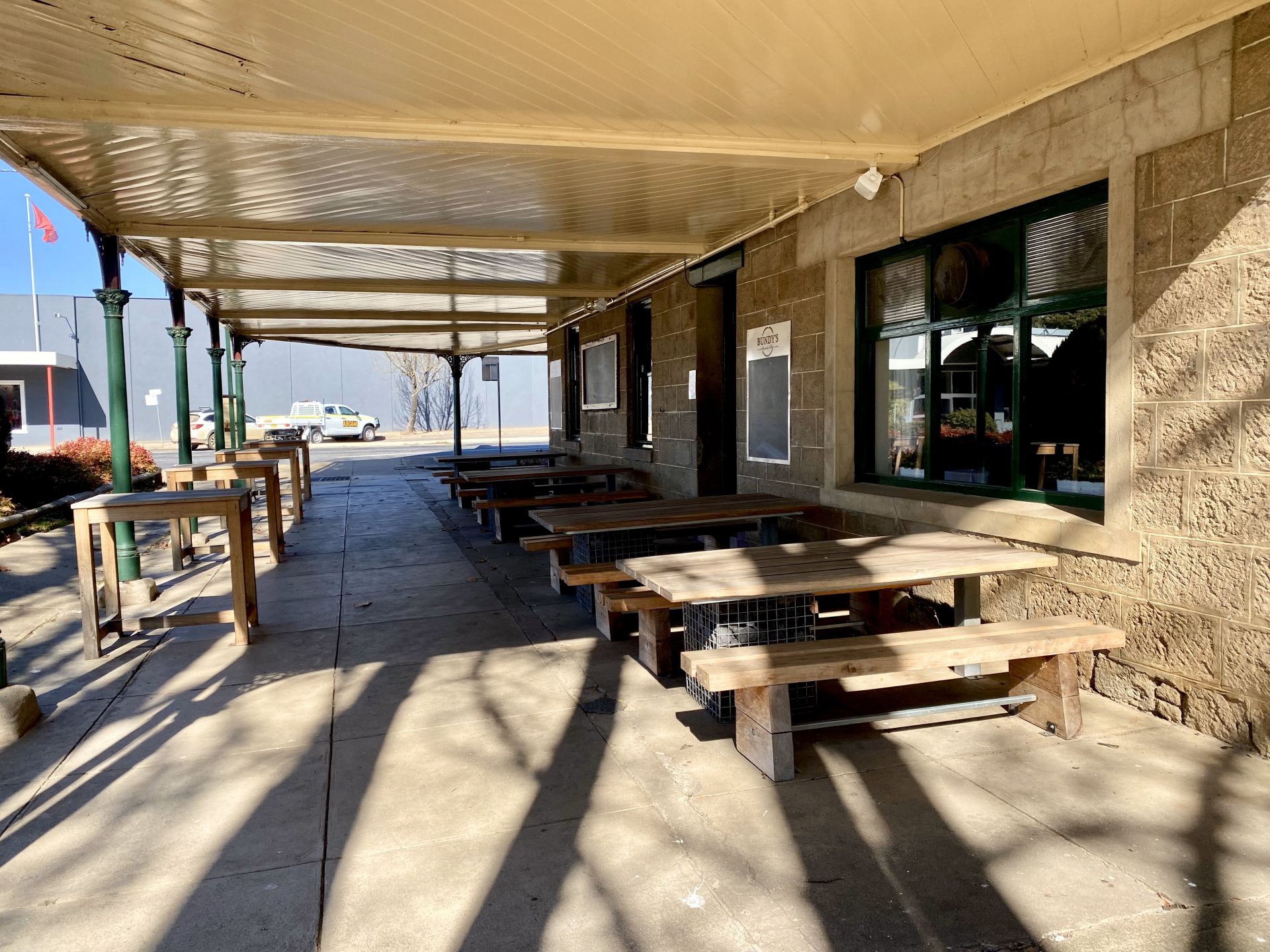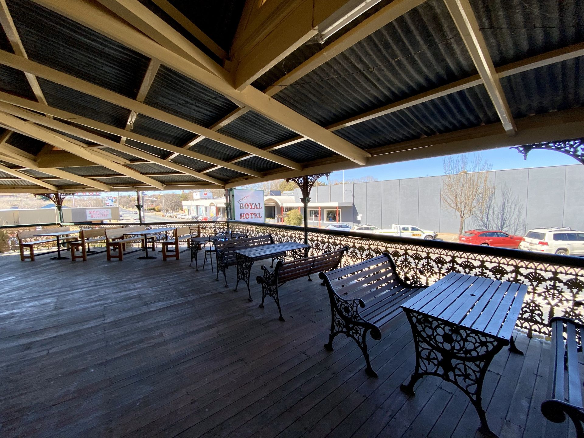 - Outdoor balcony overlooking the main street of Cooma