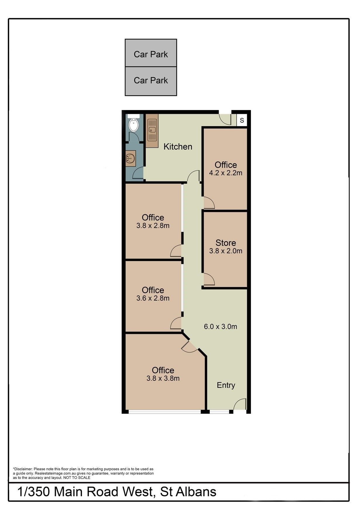 Well-presented with Reception area and 5x offices, Floor area 100m2 (approx.)