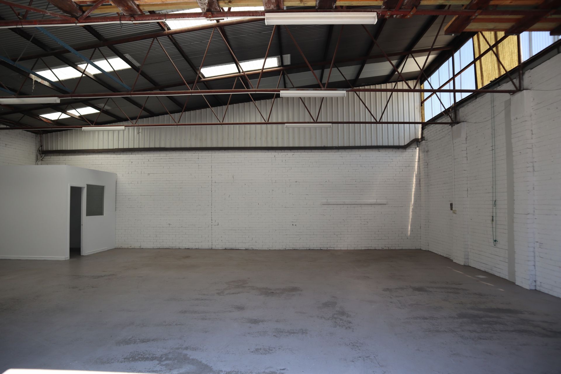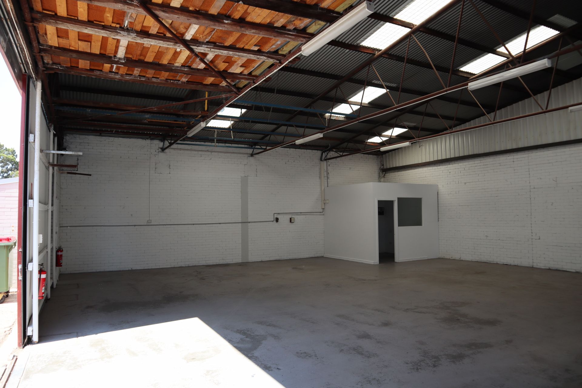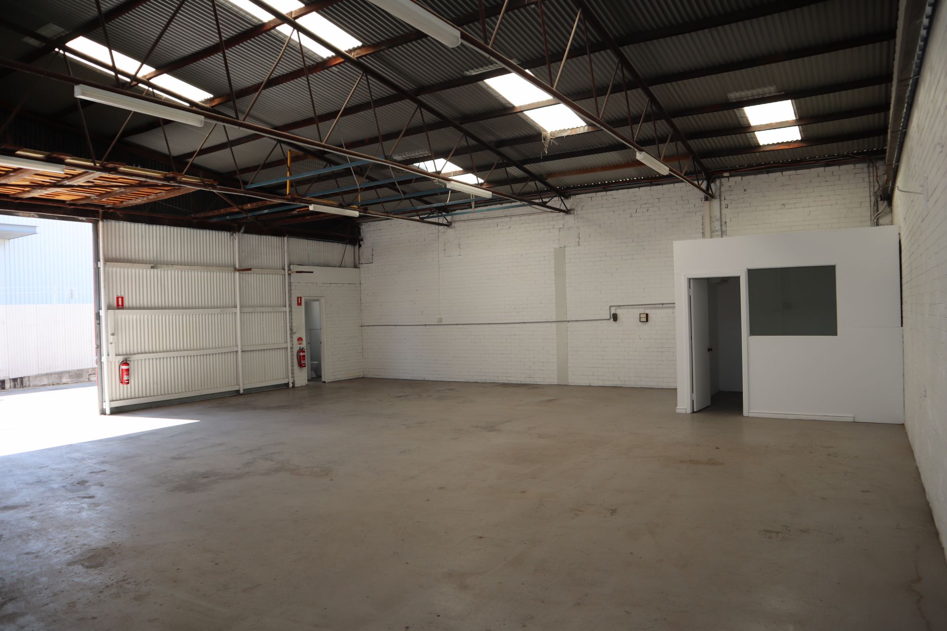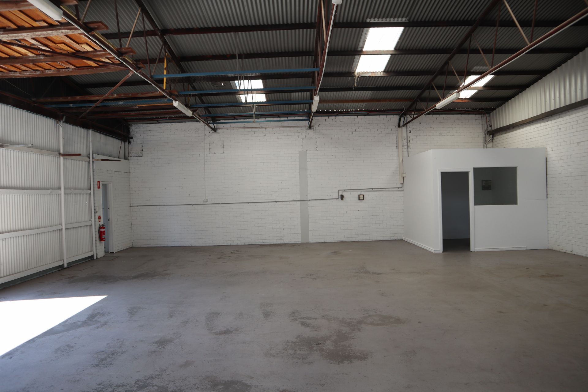 This warehouse comes with 3 phase power, large industrial sliding door, whirly bird and a small office with split air conditioner plus its own private amenities. There is good natural light with recently replaced translucent sheeting and an outside tap at your door.