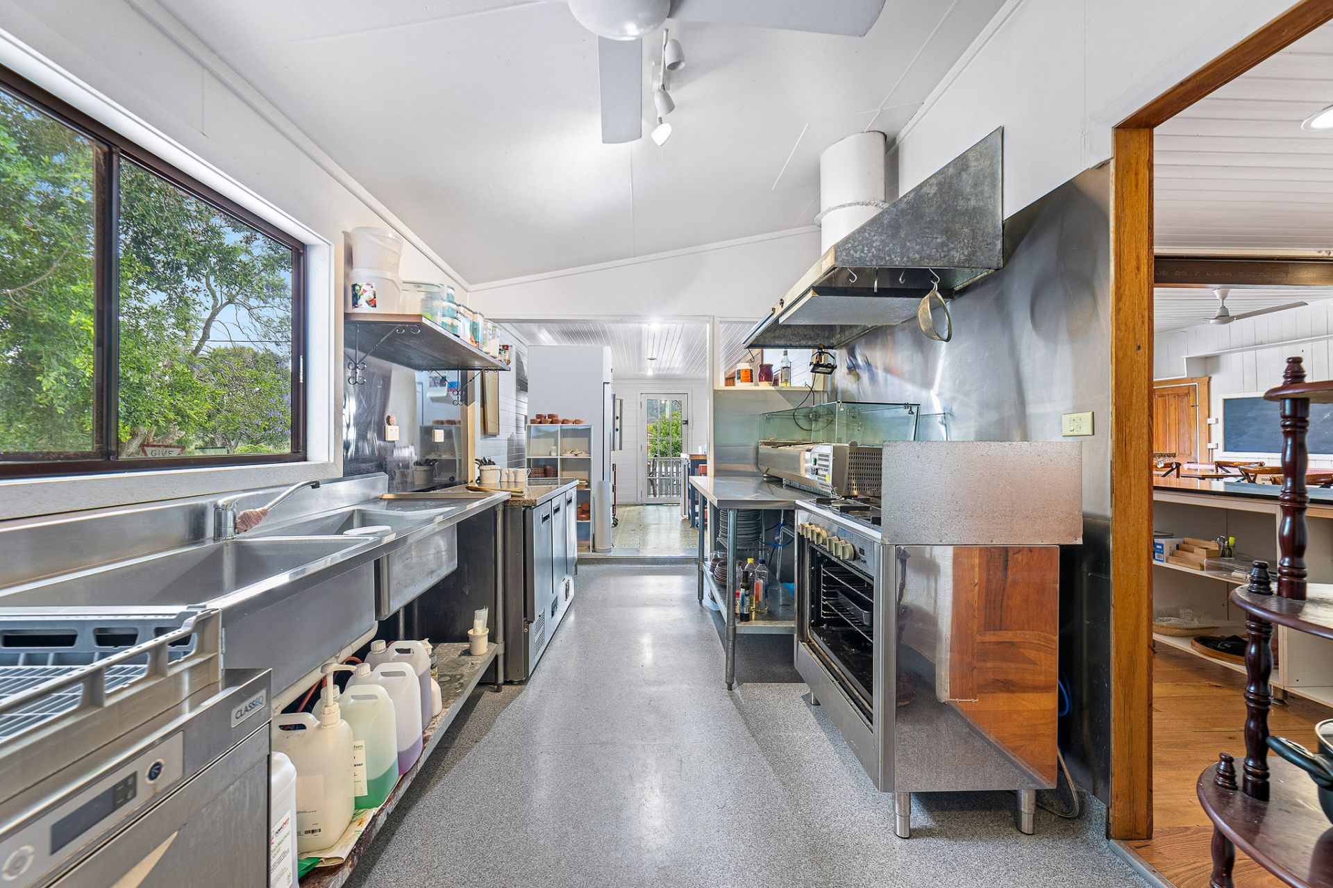 - Commercial Kitchen available (stove, cooker/range hood) and commercial space available with undercover decking and table and chairs
