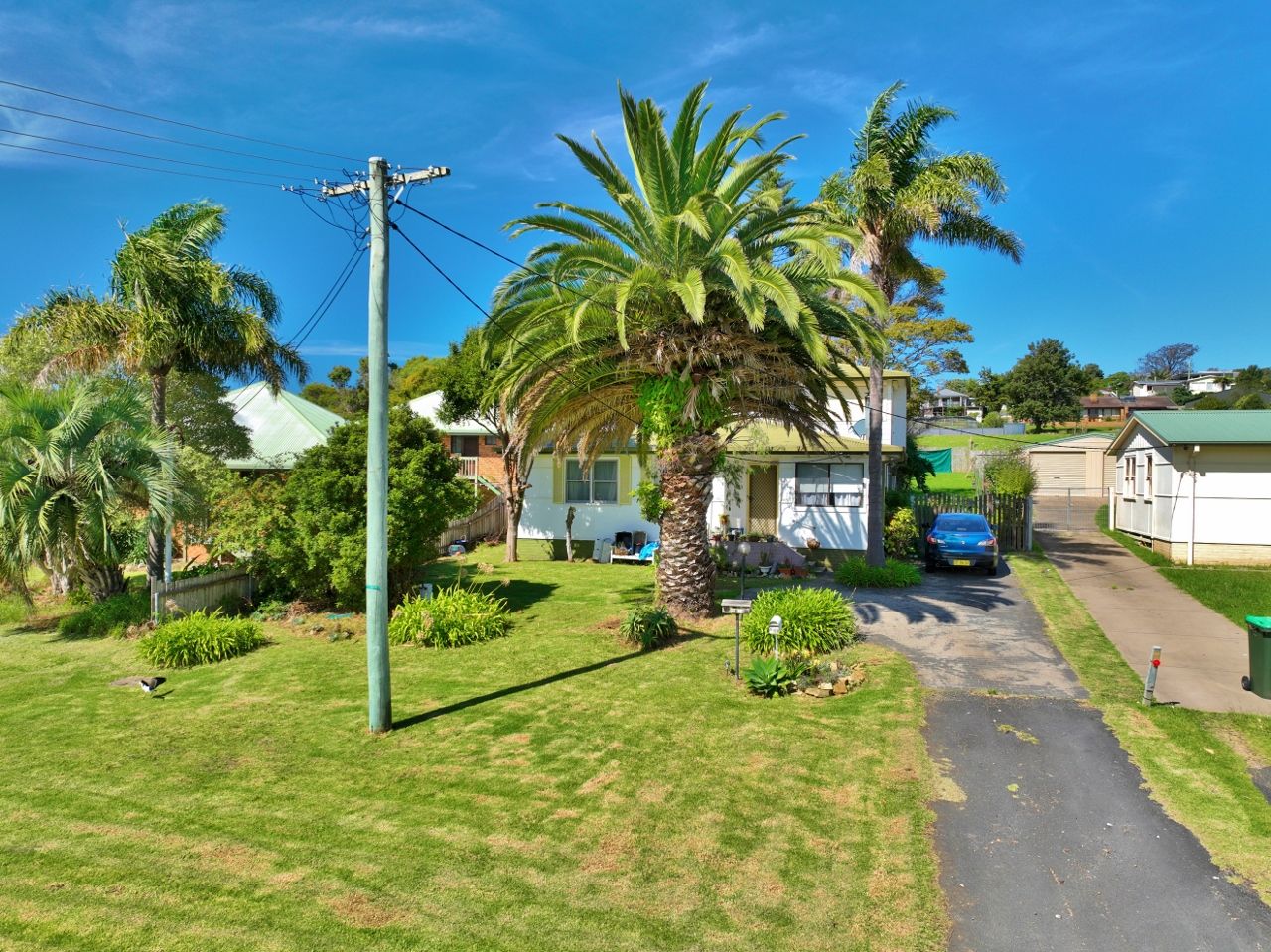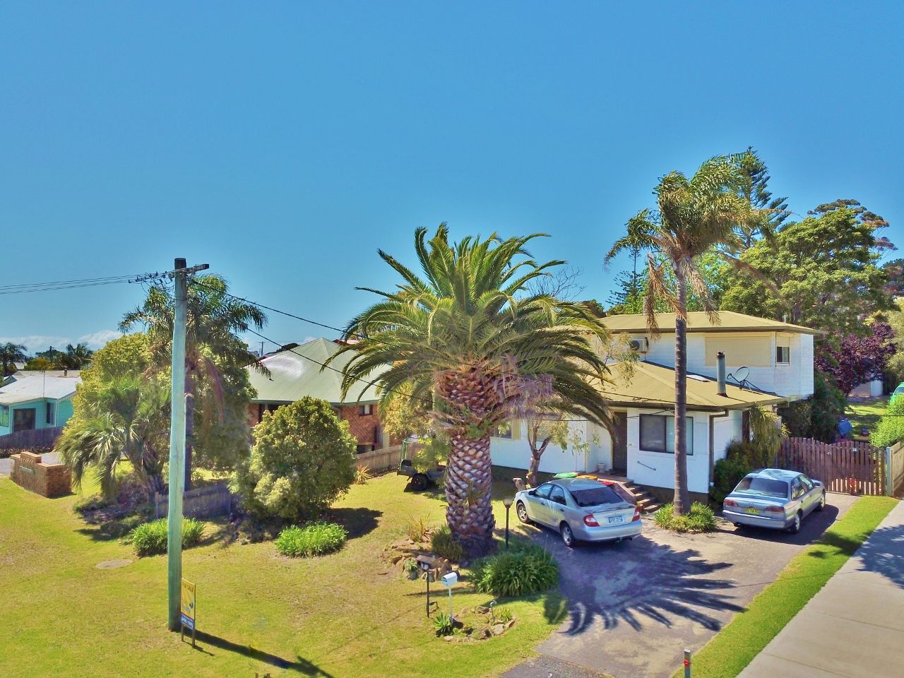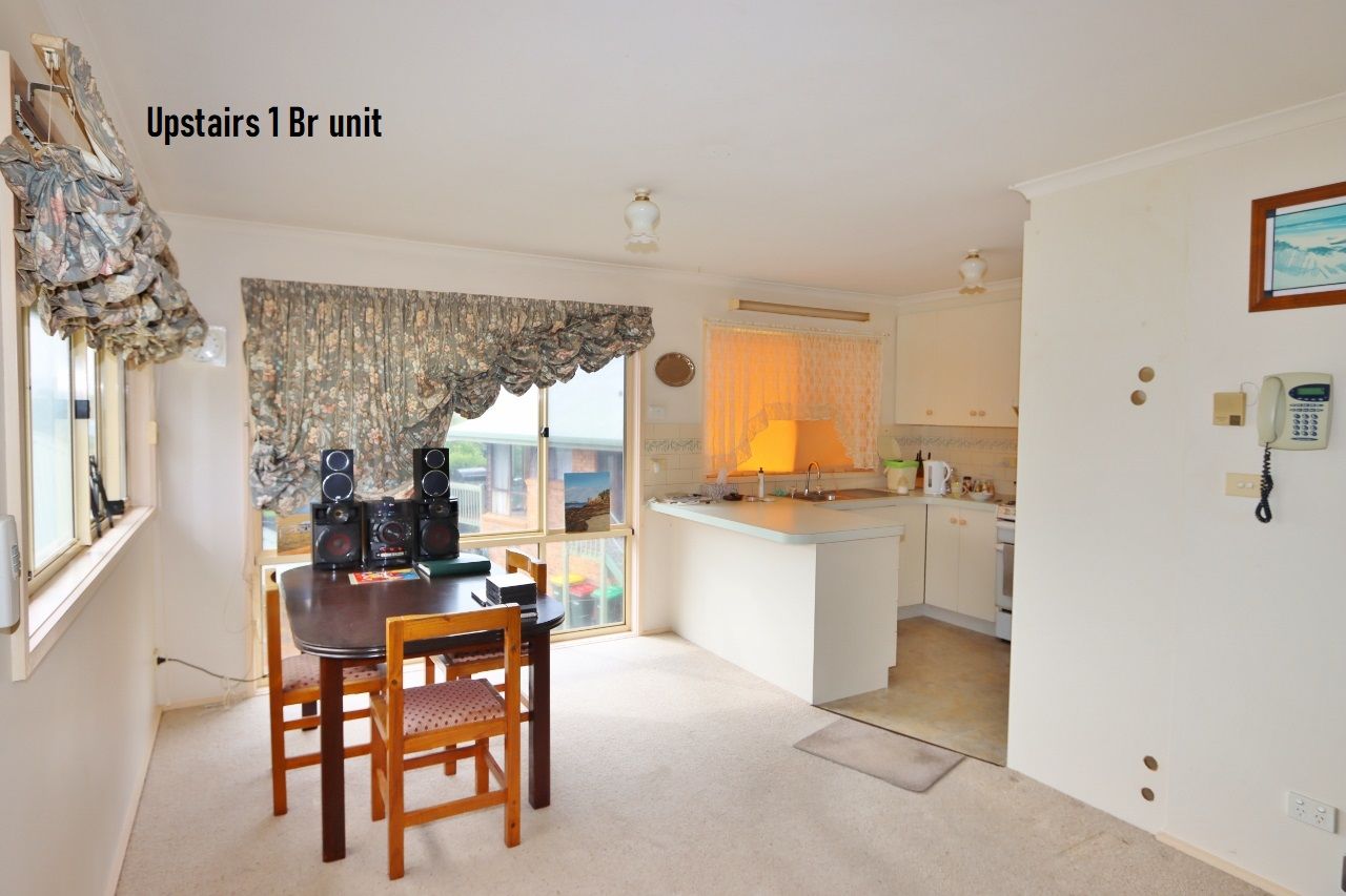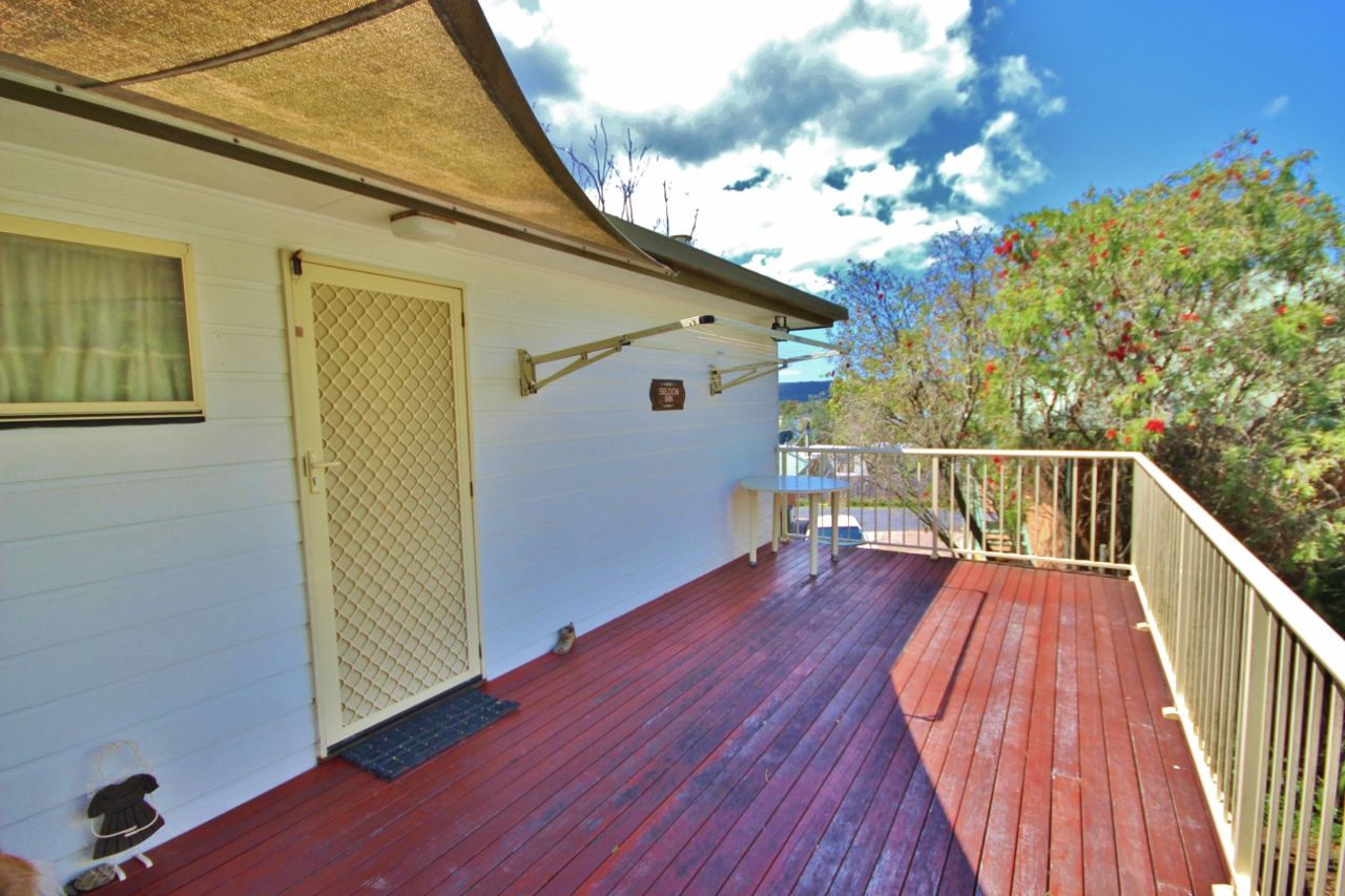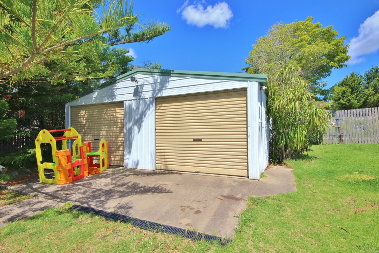 Existing improvements include a 3 bedroom residence with open plan living and combustion heater, study and a large undercover entertaining area at the rear. Upstairs is a large self-contained 1 bedroom unit with spacious living and a huge sun deck. Both are currently rented & returning $500pw. There is a detached colorbond garage/workshop at the rear.