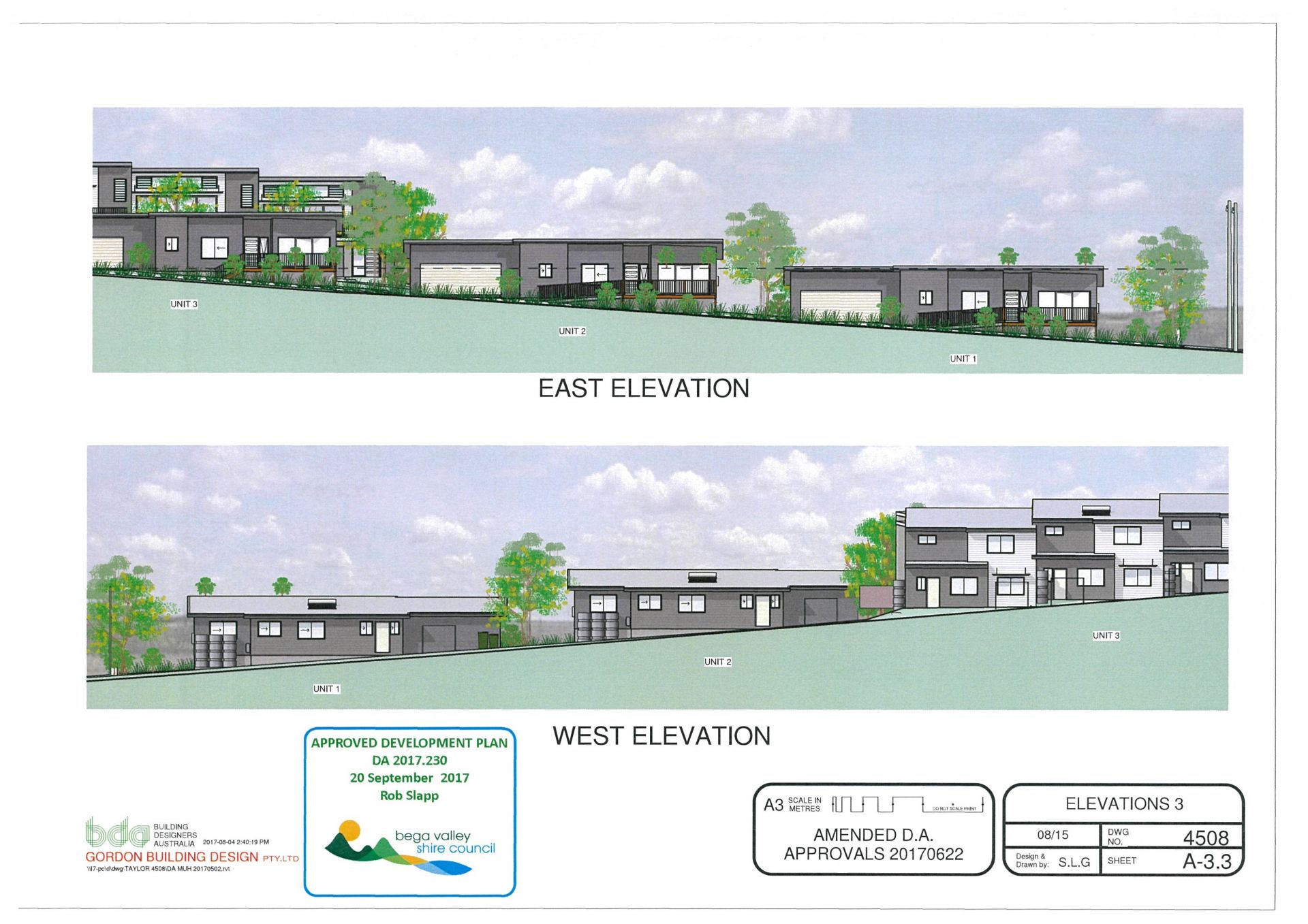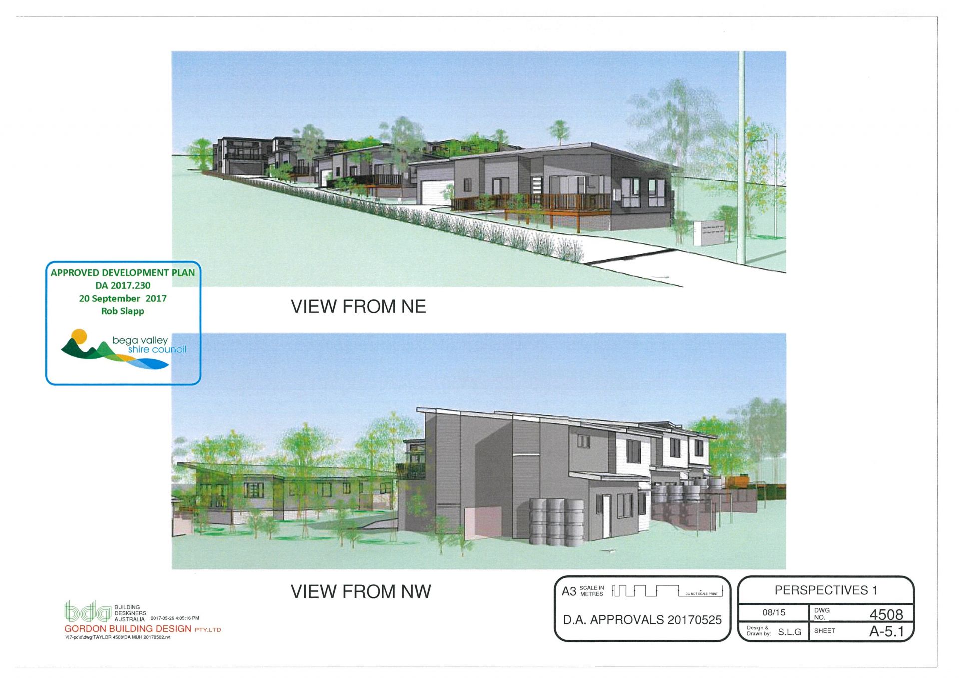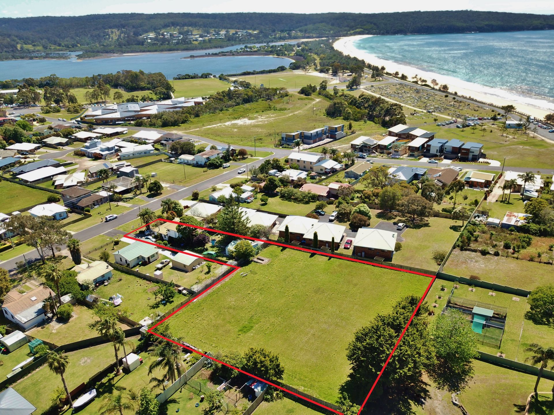 The site extends at the rear to a large gently sloping fully fenced "paddock". The DA approval allows for 10 apartments comprising 3 x single storey 2 bedroom villas with open plan living, ensuite & double garage. The remainder comprise 7 x 2 storey 3 bedroom apartments with open plan living to deck areas, ensuite & double garages. Approved for development in 3 stages, the design takes full advantage of the sites solar aspect and views which span across Lake Curalo to north Aslings Beach & Bay.