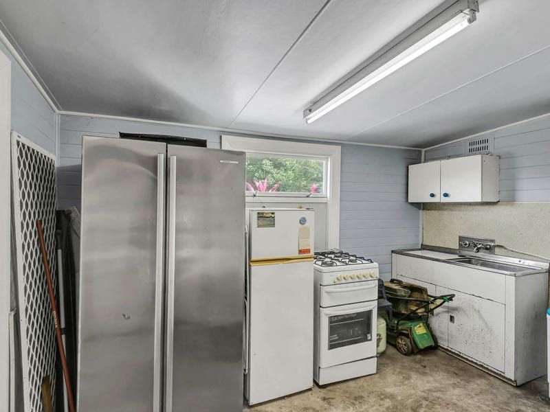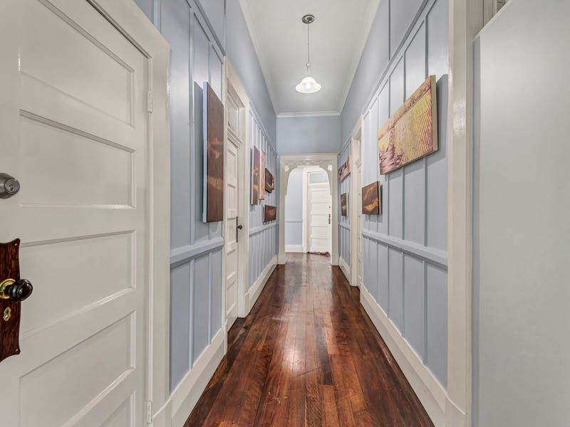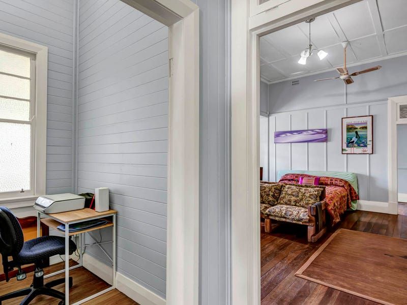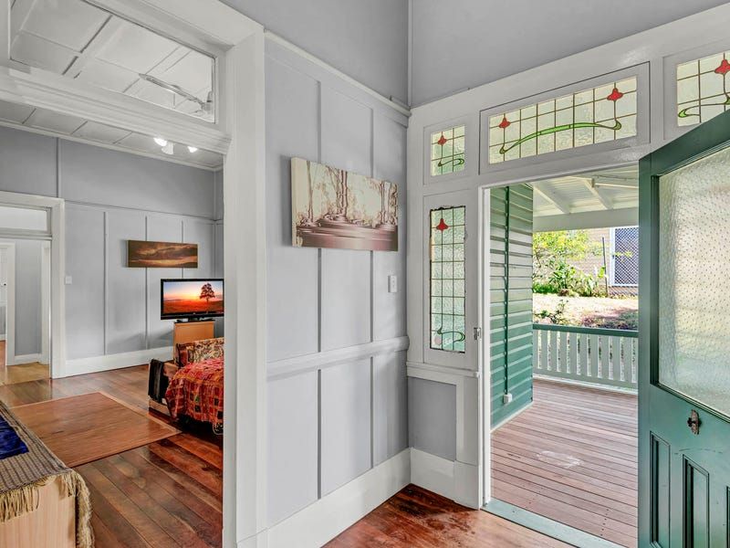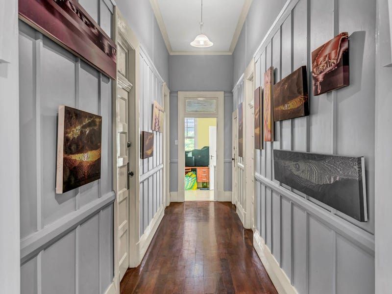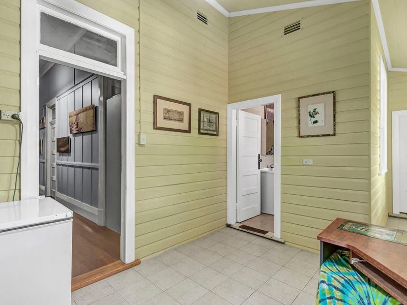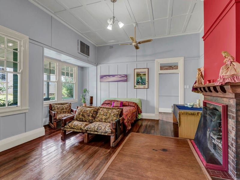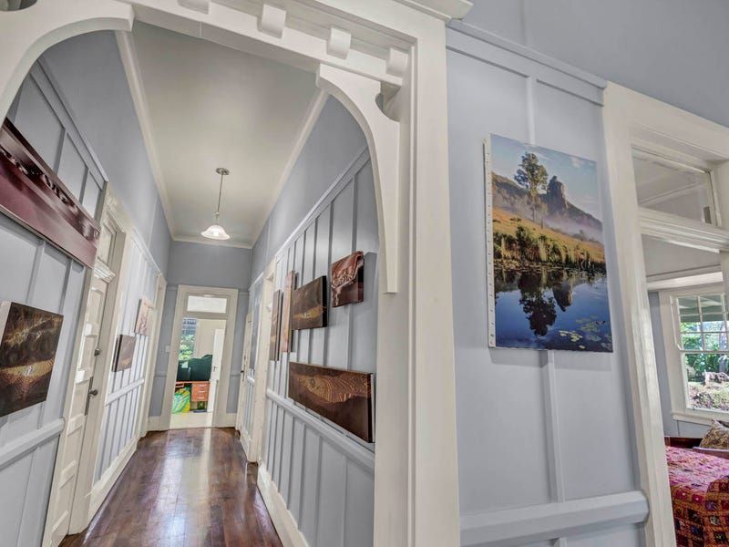 Features include restored clinker brick walls, an open fireplace, air conditioning, 14 ft high ceilings, ceiling fans, wide board polished timber floors and architraves up to 12' high. Contemporary improvements include a huge 15kw solar system, and air conditioning. Most of the residential rooms open out to the extra deep verandahs down the southern side filled with bays and nooks for privacy. These cool verandahs with huge original rolled glass windows look over lovely tropical gardens.