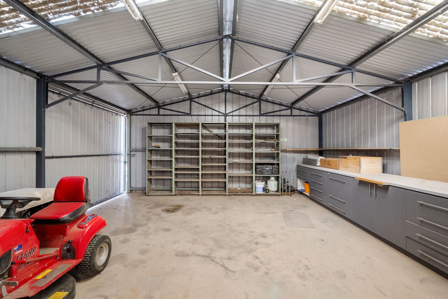 Tradesmen, car mechanics/enthusiasts and boys, in general, will be in awe of the shedding on-site. It starts with a double garage under the house roofline with adjoining workshops all with concrete floor and power, the adjacent garage with- roller door to rear yard (8m x 5m), plus another workshop/garage (7m x 6m), plus a further workshop garage (6m x 6m), a high-span carport (8m x 6.5m) for caravans, trucks, vans etc. Side gates off Chrysler Drive provide easy access to all shedding.