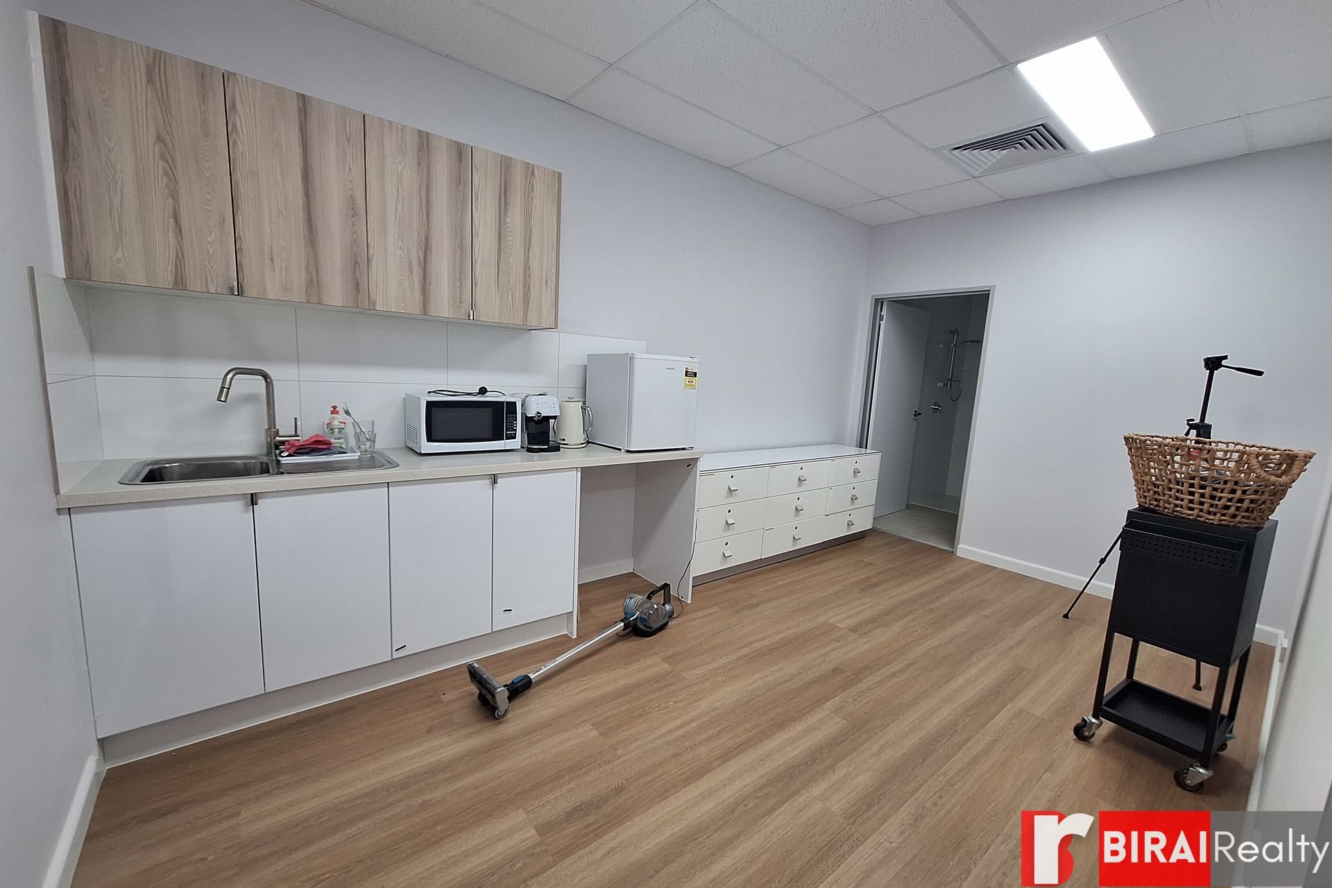 Modern staff amenities including kitchenette, toilet and shower facilities on both levels