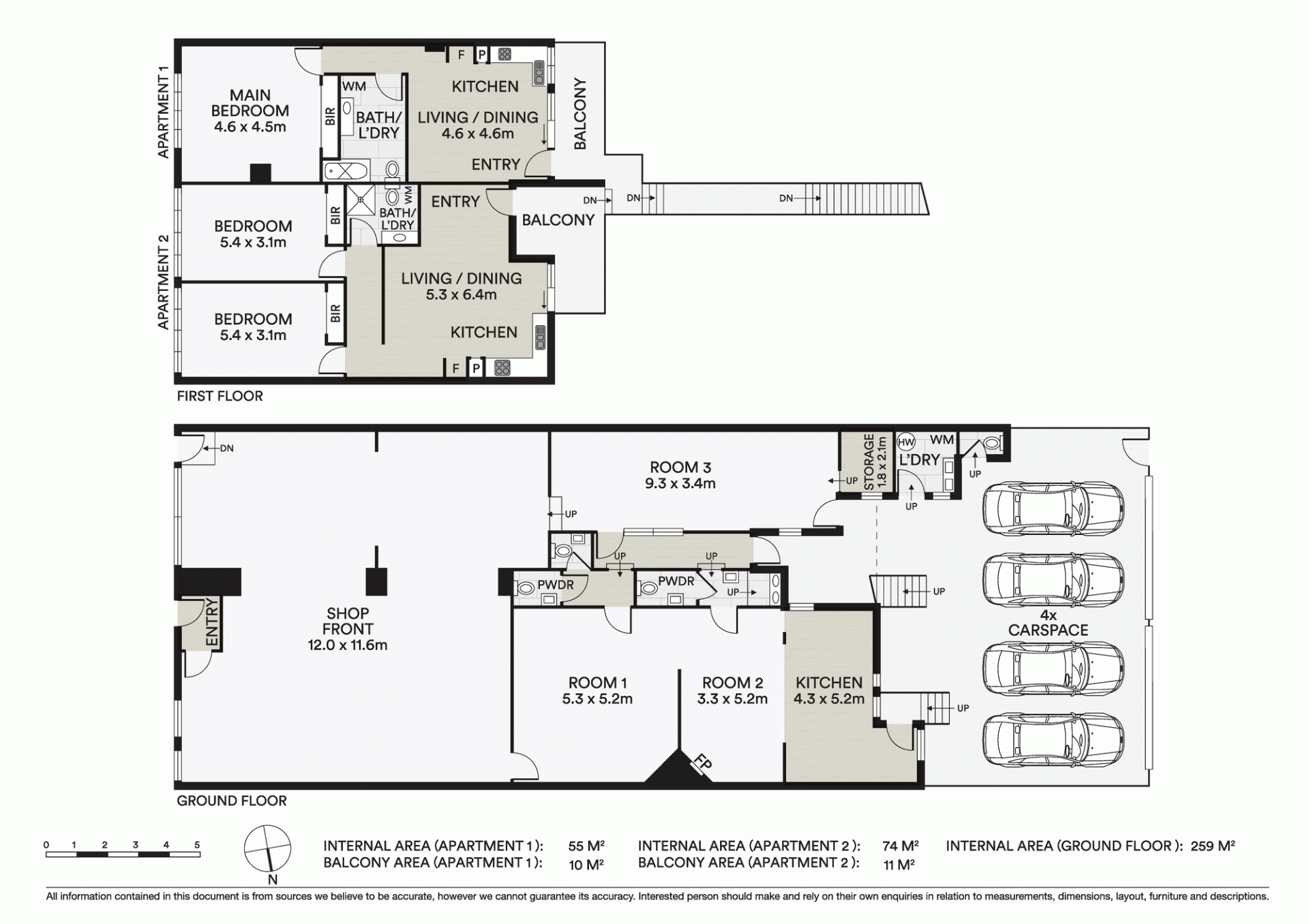 - Both apartments each provide an open plan living and kitchen, central bathroom with laundry and built in robes in bedrooms