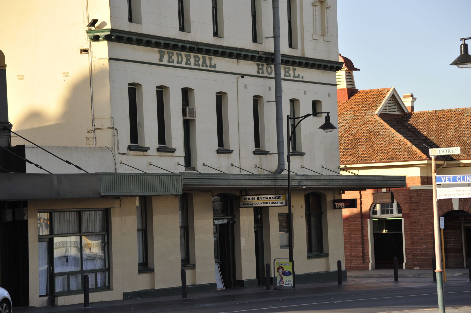 The Federal Hotel complex is up for sale after ownership of 28 years. situated on 4 titles, the first two titles contain the 3 story hotel & lounge complete with 35 accommodation rooms, a manager's 2 bedroom apartment, the main bar complete with an operating TAB and a large function room with an industrial kitchen leading to the dining area and beer garden. The third title contains a 4 unit ensuite motel and the fourth title has a detached drive-in bottle shop complete with cool and storerooms.