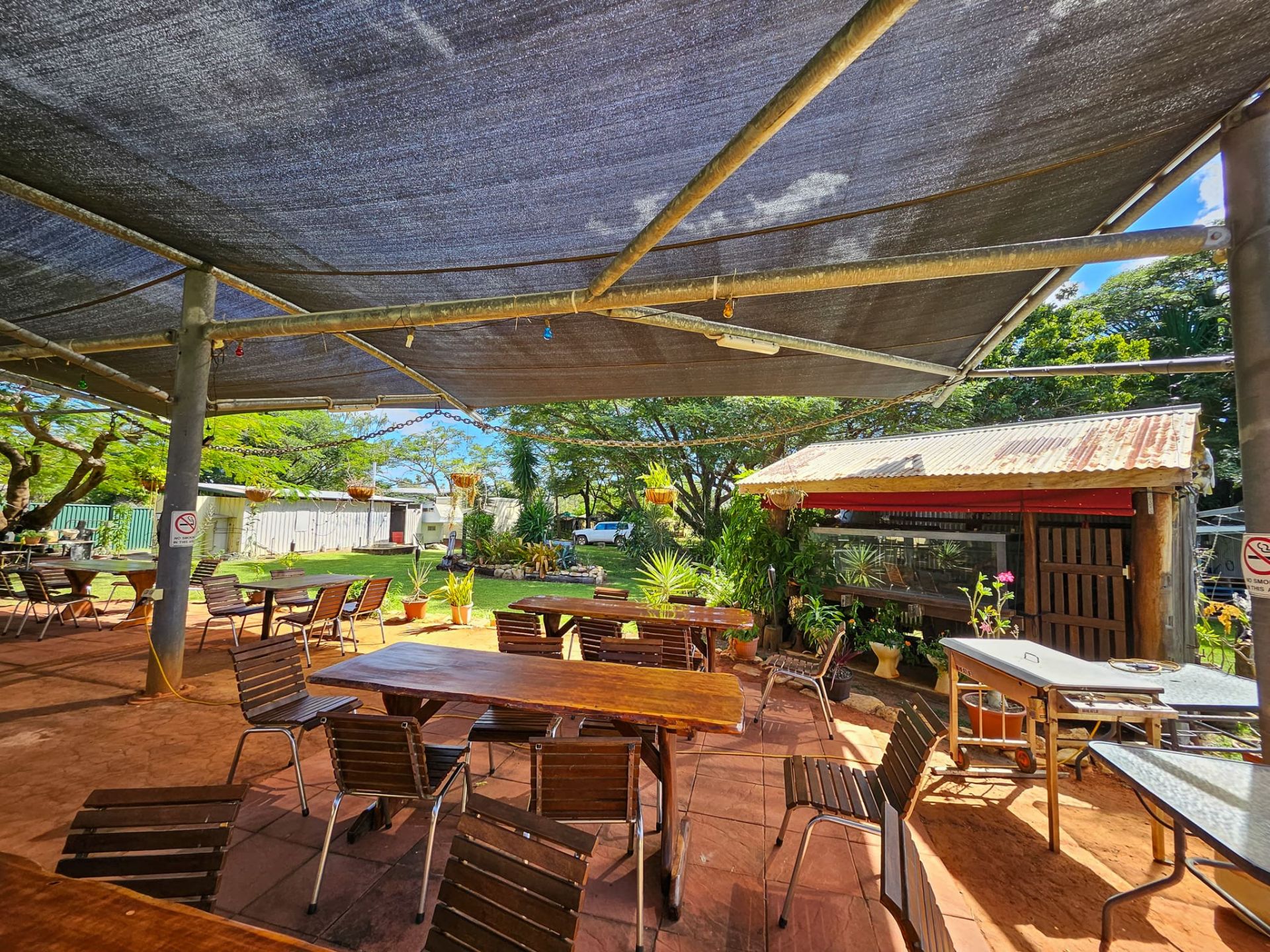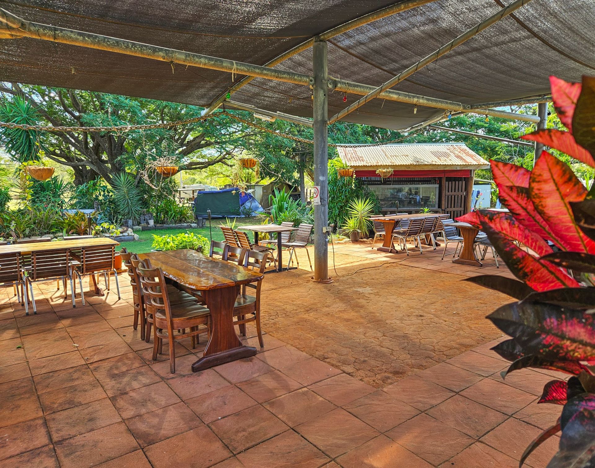 Spacious covered outdoor dining area
