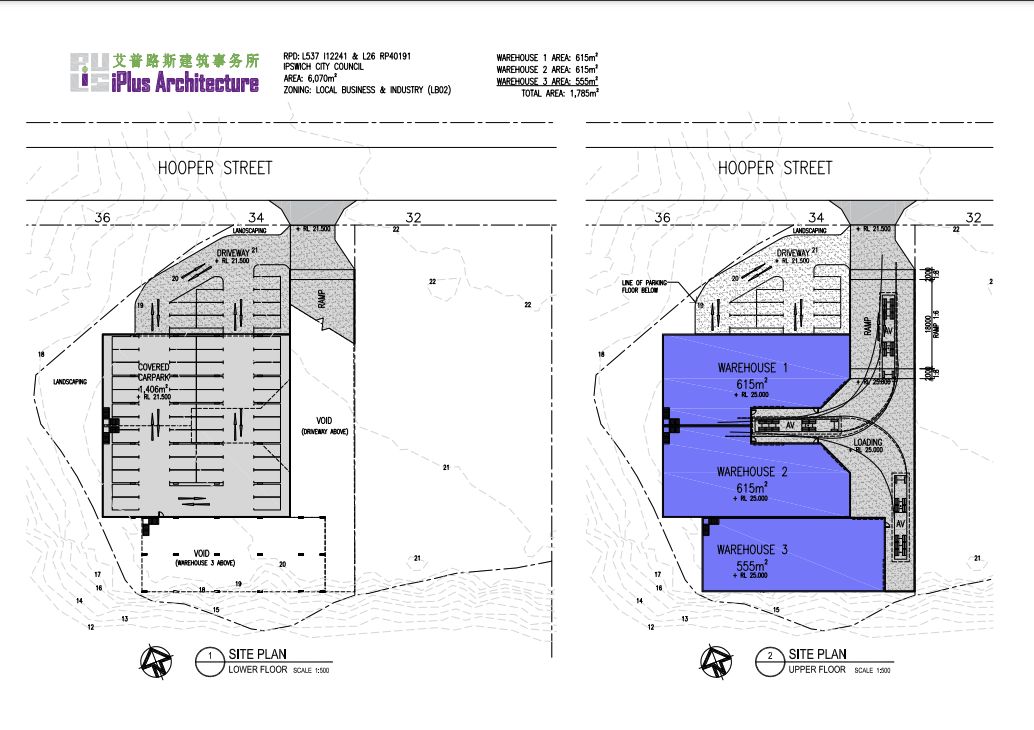 • Total Concept Area: The proposed development features a total area of 1,785 sqm under roof, with 55 carparks available exclusively at 34 Hooper Street.
